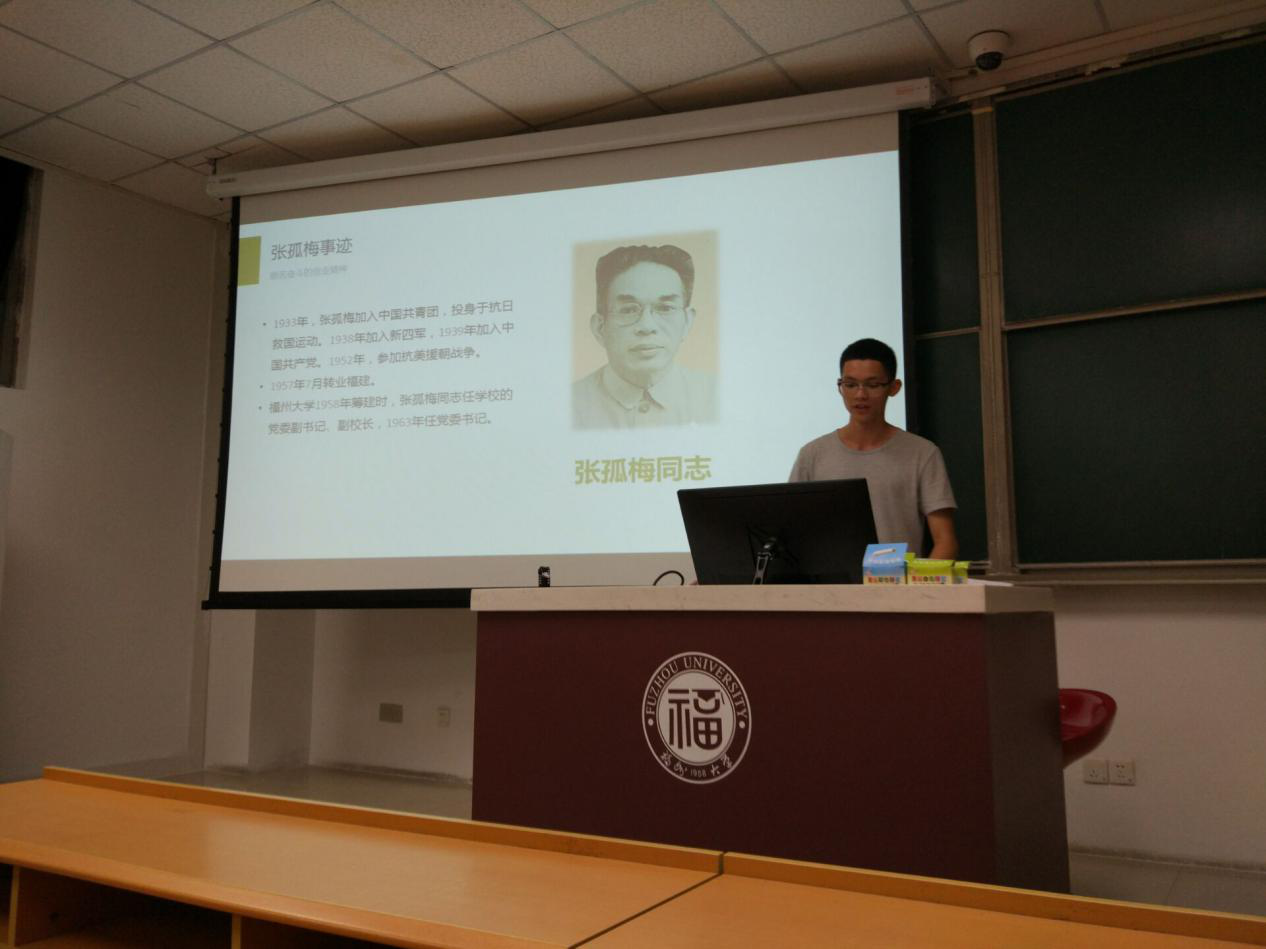团课伊始,机制三班团支书吴坤鹏通过展示校史的照片、题字等资料讲述了av大平台