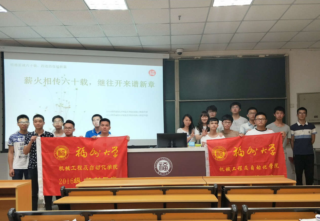 2016级机械设计制造及其自动化1班和3班联合举办“薪火相传六十载,继往开来谱新章”团课活动。