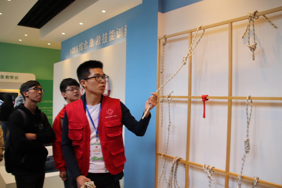 活动开始,工作人员组织志愿者有序进入参观场地,同时由红十字会现场讲解员为志愿者进行各个模块的讲解。参观期间,志愿者对食品、用电、消防等生活常见安全隐患有了更深入的了解,同时对结绳、急救、警报等实用技巧有了初步认知。接着,在解说员的引导下志愿者们亲自体验了心肺复苏、酒驾视野等环节,在实战应用中灵活运用已学的安全知识。参观完毕之后,工作人员以有奖问答的形式检验志愿者们今日的收获,现场氛围活跃。