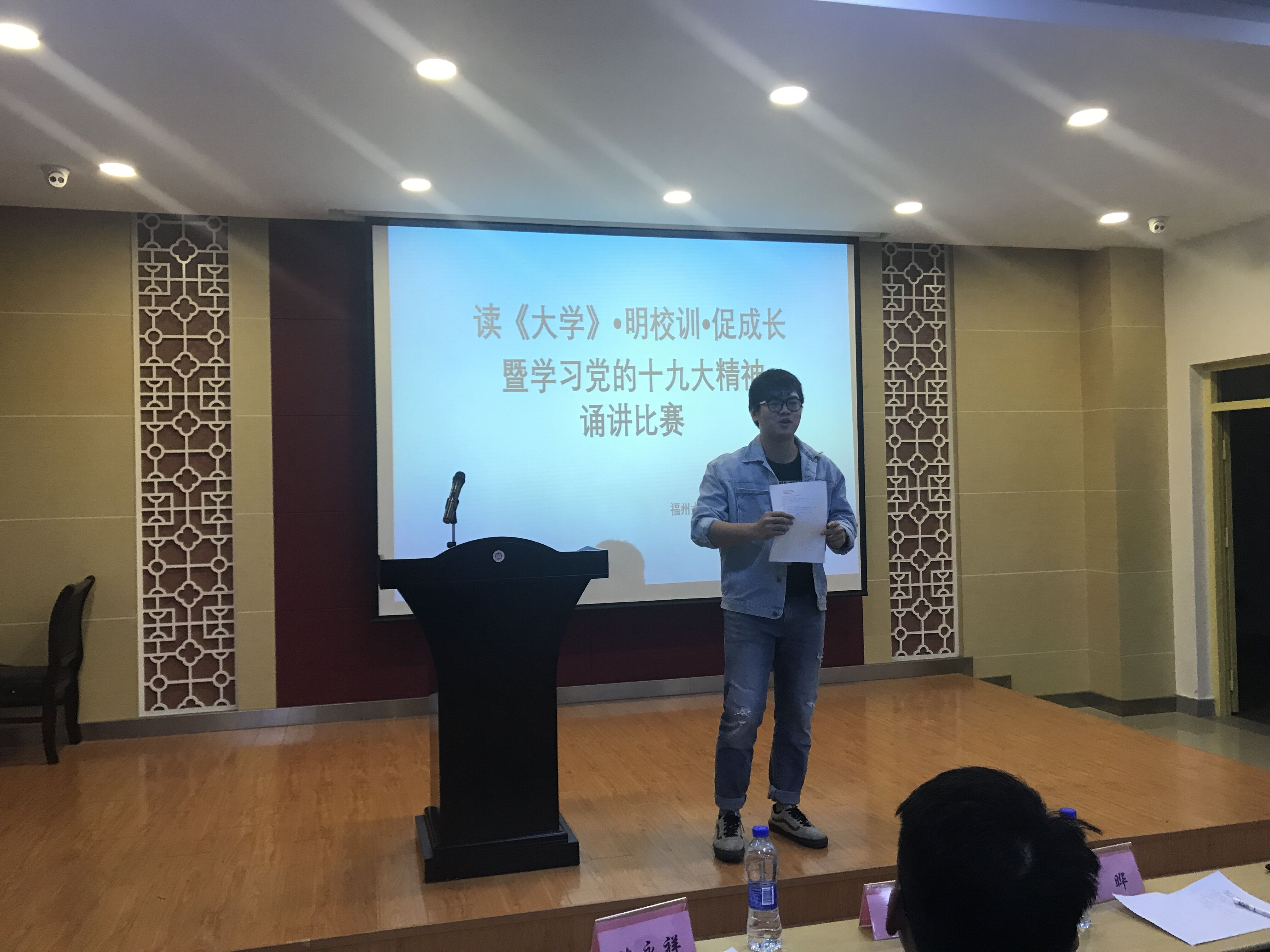 2017级各班的优秀演讲者。比赛要求参赛选手用3-5分钟时间简洁表达自己对十九大或者对《大学》的感悟。
