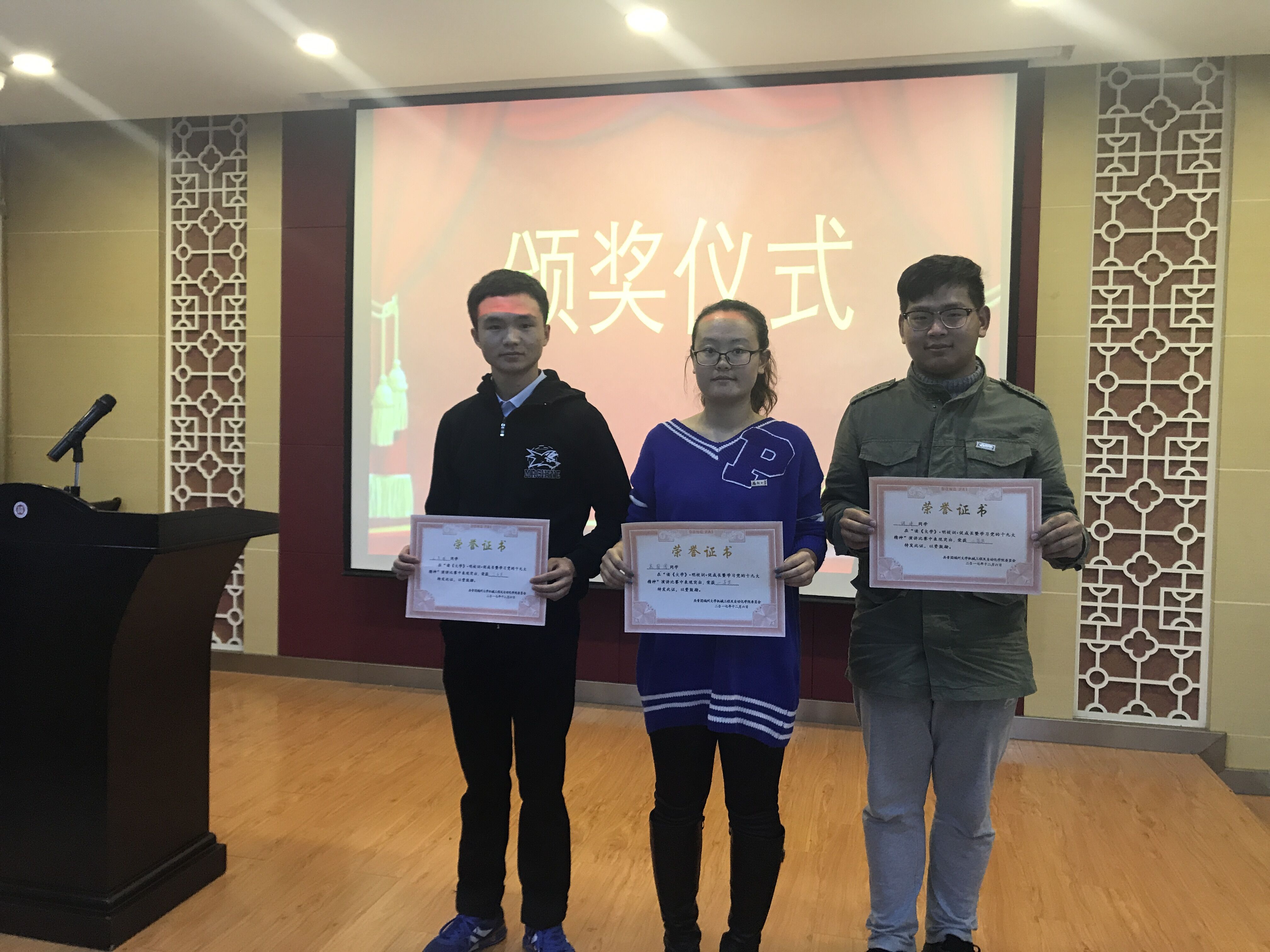 最后,评委根据评分标准评选出前三名的参赛选手,他们分别是:晁圆圆、胡峰和王英辉。由三位评委分别为获得前三名的参赛选手进行颁奖。颁奖结束后,选手和评委合影留念,至此比赛正式结束。