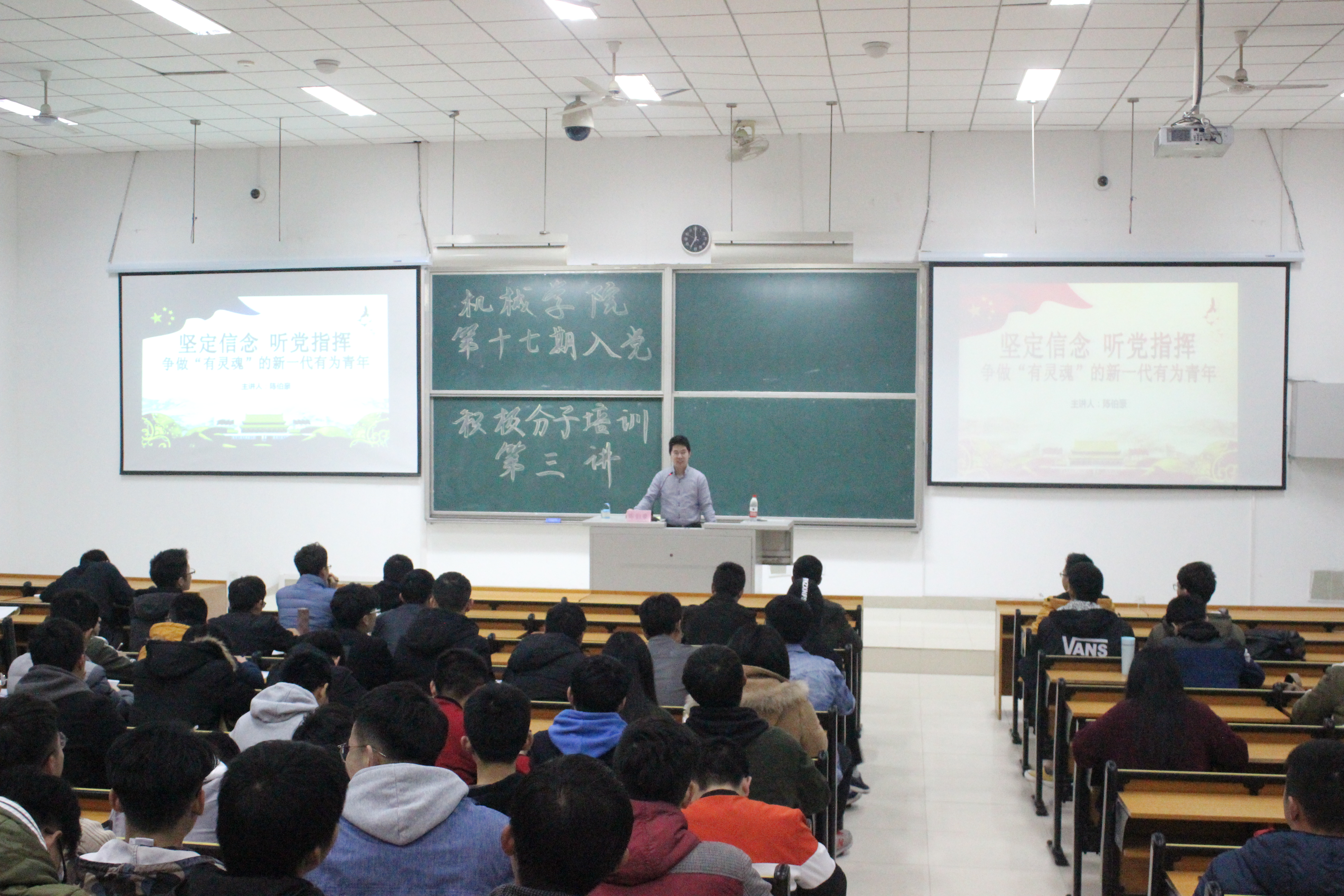 于文四101开展第十七期入党积极分子培训课第三讲。此次培训课的主讲老师为2017级辅导员陈伯豪老师。