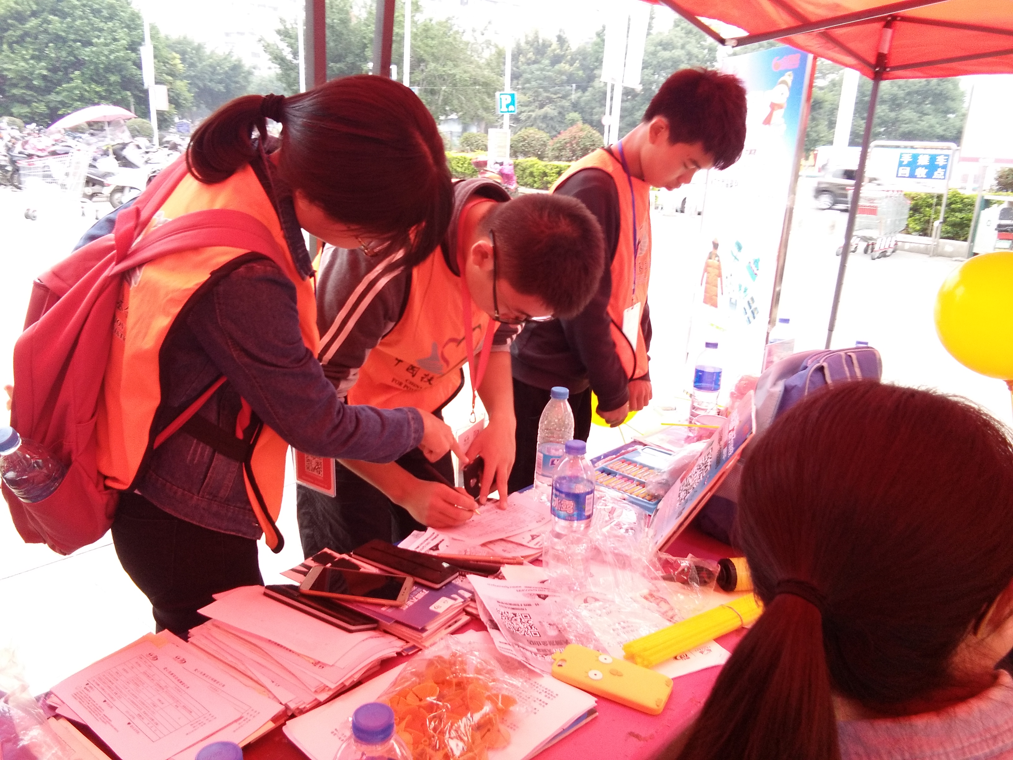 校徽,并准备好宣传单、二维码、和三联单。然后以网点为中心到街上劝募。过程中不少队员都受到打击,遭到他人的不屑,但是志愿队仍然坚定信念,不屈不挠,最终取得了令人骄傲的成绩。最后,志愿队员三人都捐出100元,直接挂钩西部山区的一个孩子,并且在将来会收到来自他们的回信。
