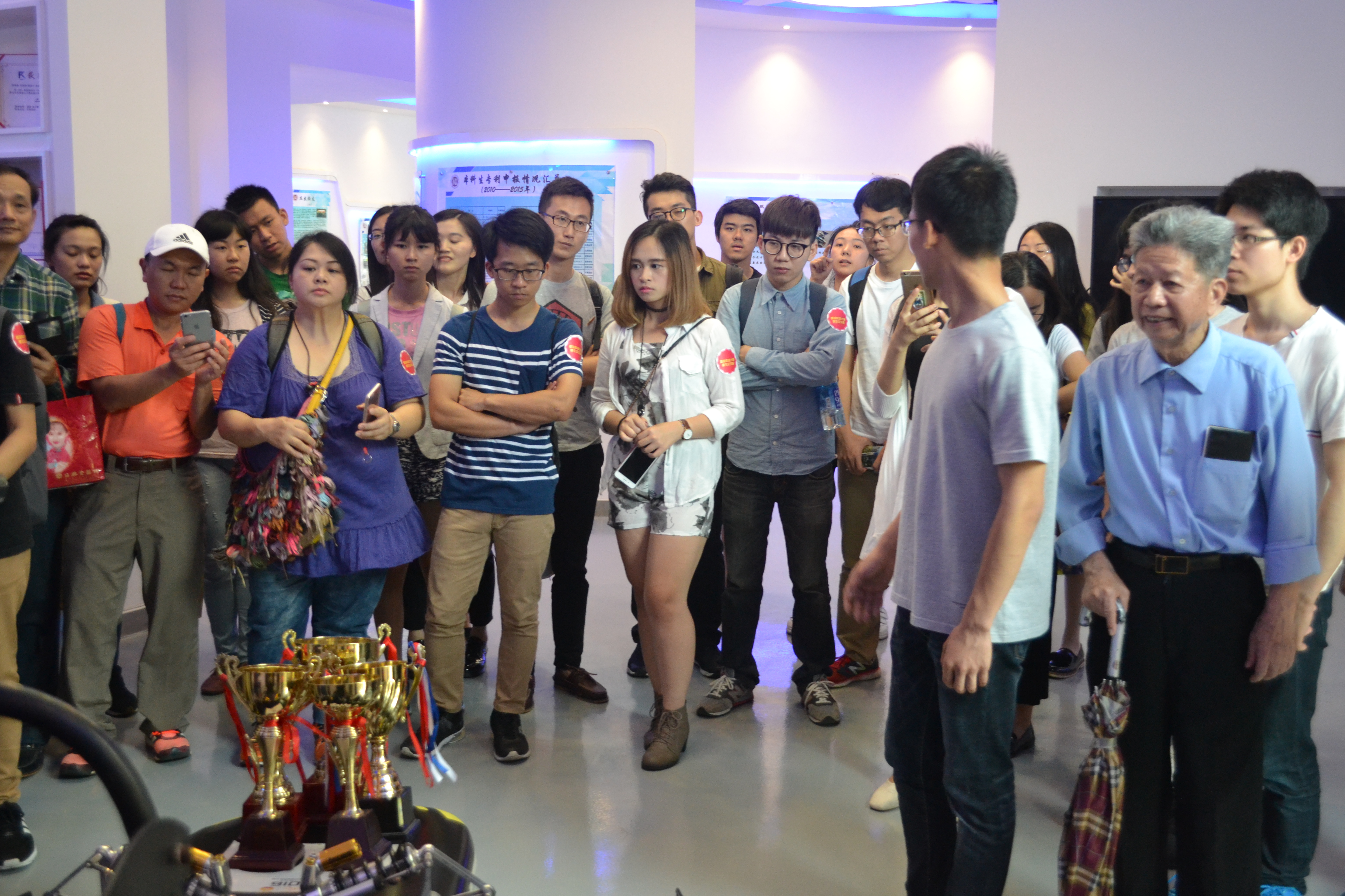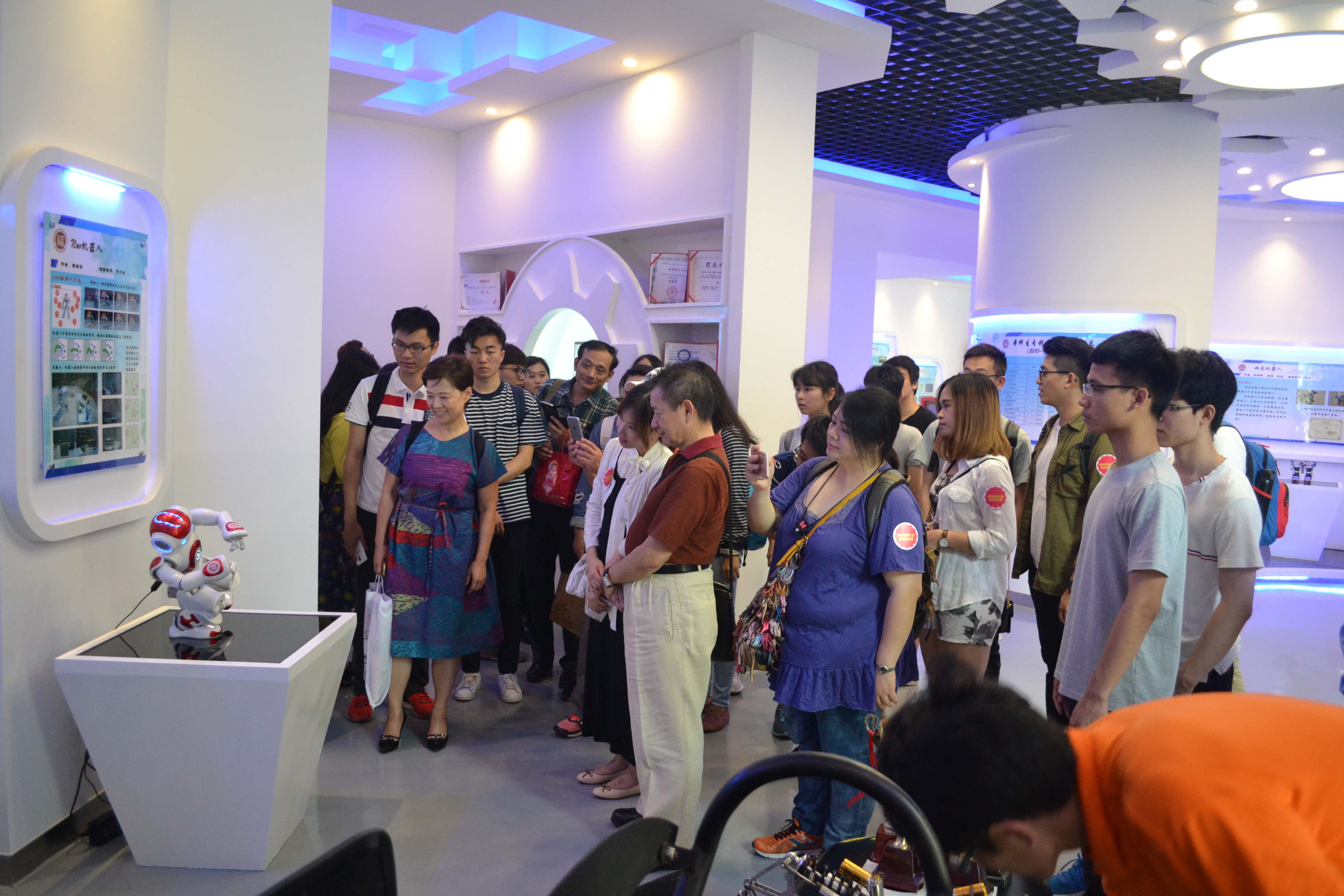 5月27日,台湾科技大学青年学生来到av大平台 科技创新文化馆参观。在av大平台 14级辅导员滕培秀老师的带领下,参观了av大平台 学生的优秀作品,并对其大为称赞,表示此次参观收益良多。