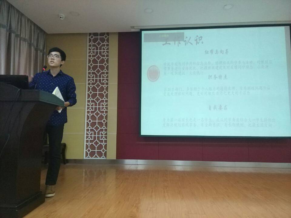 于机械北楼415会议室举行2016级班委述职大会。2016级辅导员陈伯豪老师和陈谊老师、2015级辅导员金瑞老师以及学院团委学生会主席团成员和各班班长团支书出席了本次述职大会。参加活动主要为学院16级各班班长和团支书。