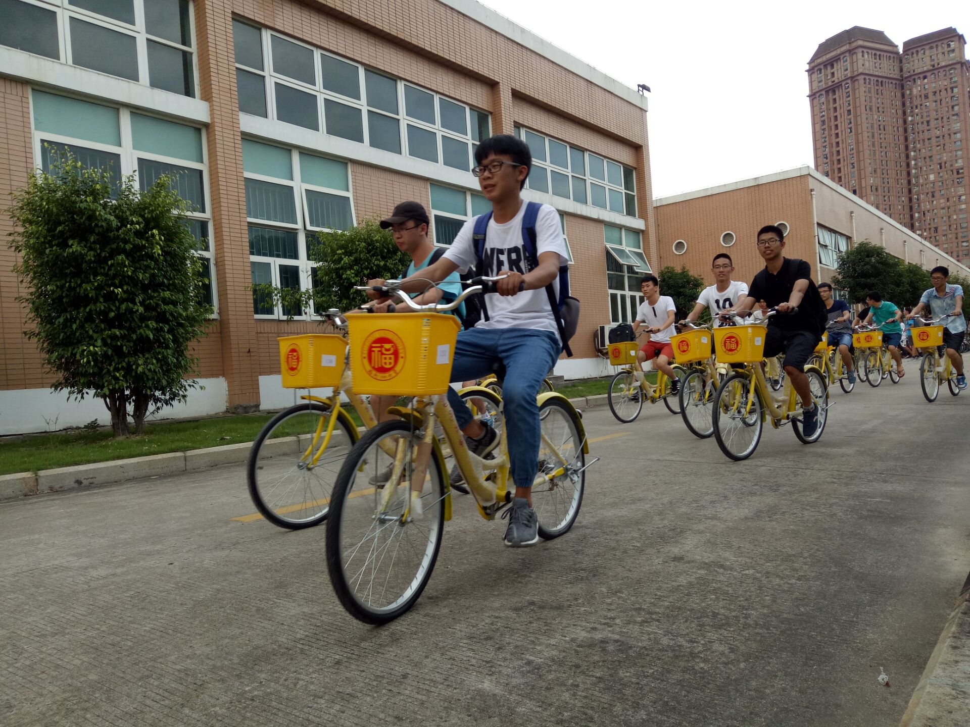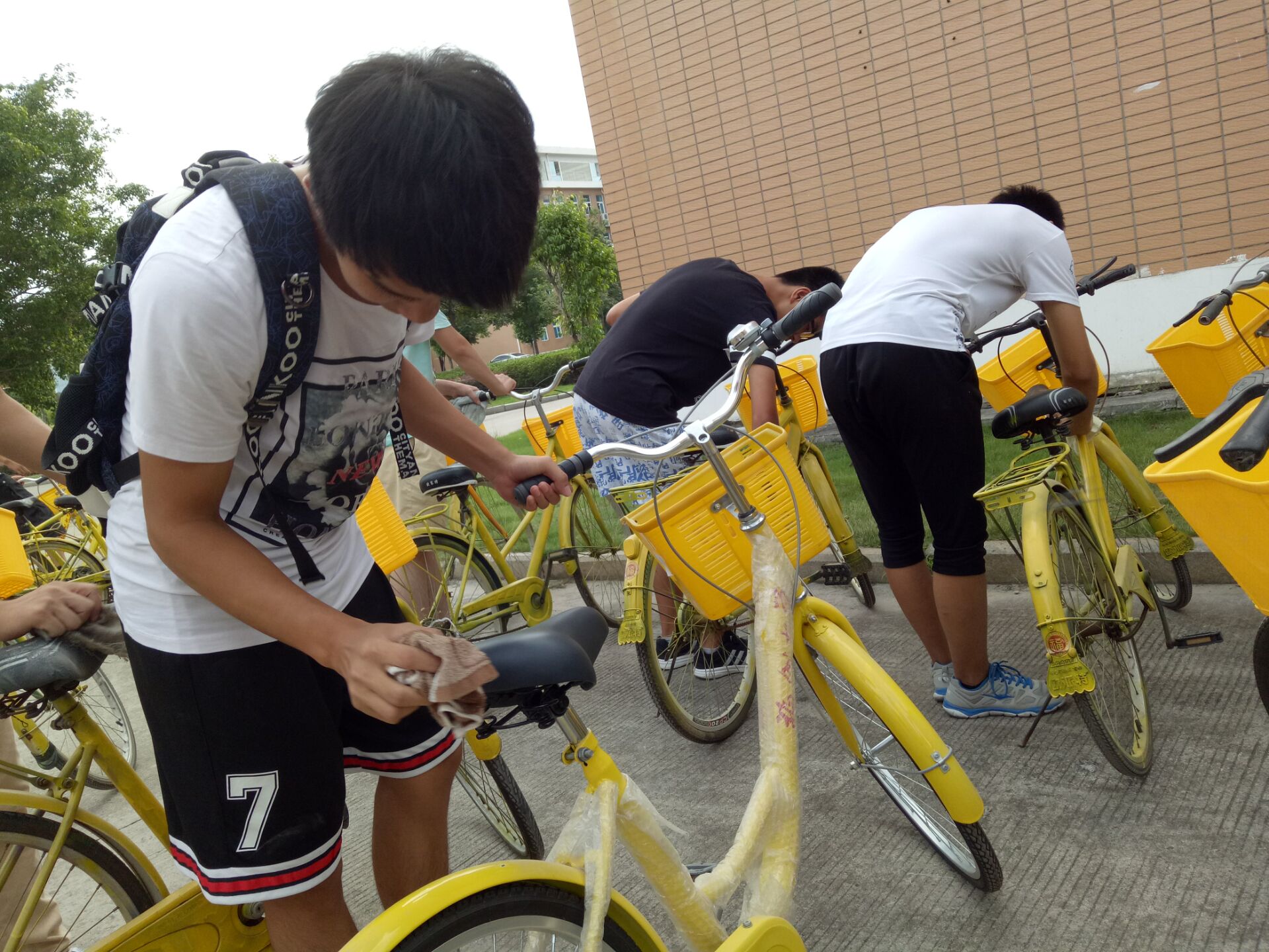 组织青年志愿者将200辆“小黄蜂”校园公益自行车清洗、整理、运送投放到事先设立的停放点。