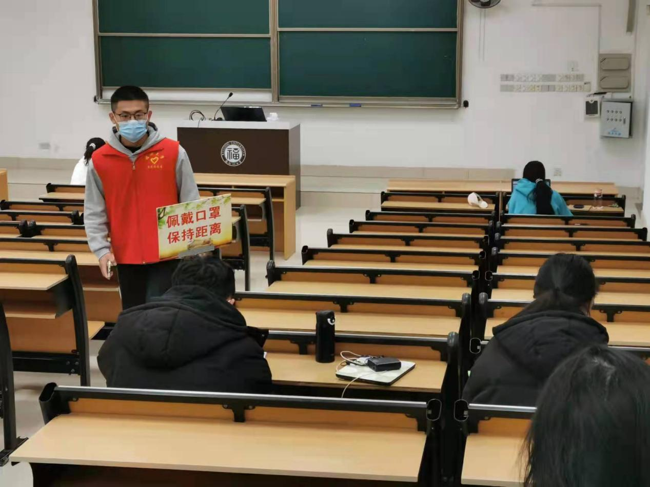 停课不停学,虽然有了疫情,但是我们会坚持学习。读书是学生的本职工作,疫情来势汹汹,教室里埋头苦读的身影却仍不见少。“教室文明督导”志愿服务岗志愿者,提醒同学们学习的同时,严格遵守限流要求,规范佩戴口罩,保持安全距离,做好个人防护。