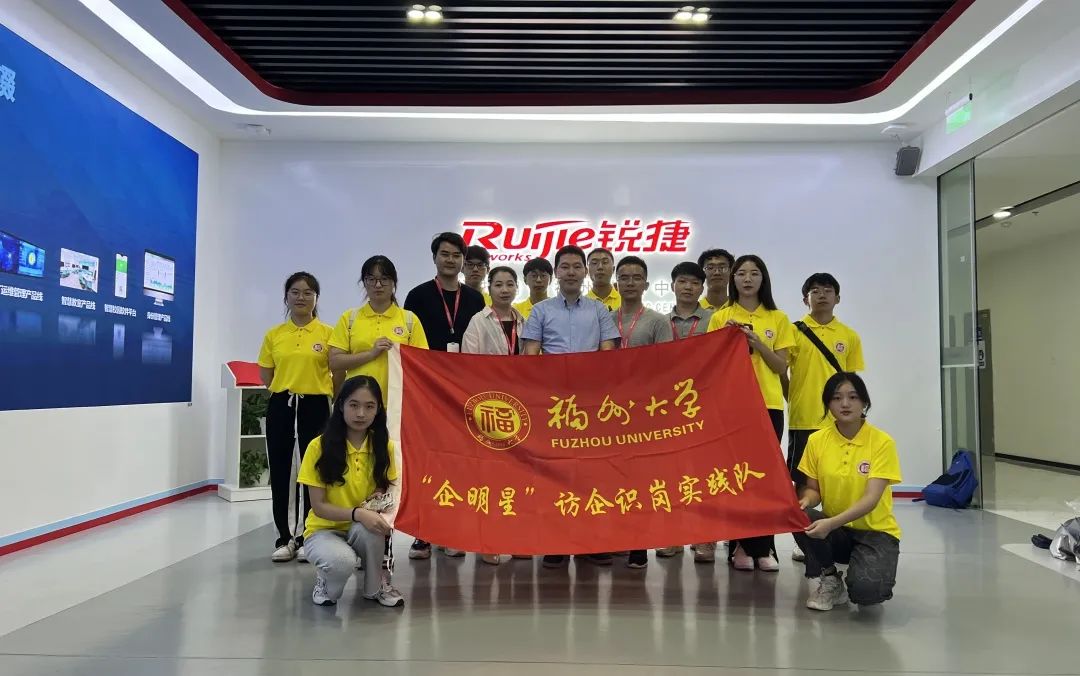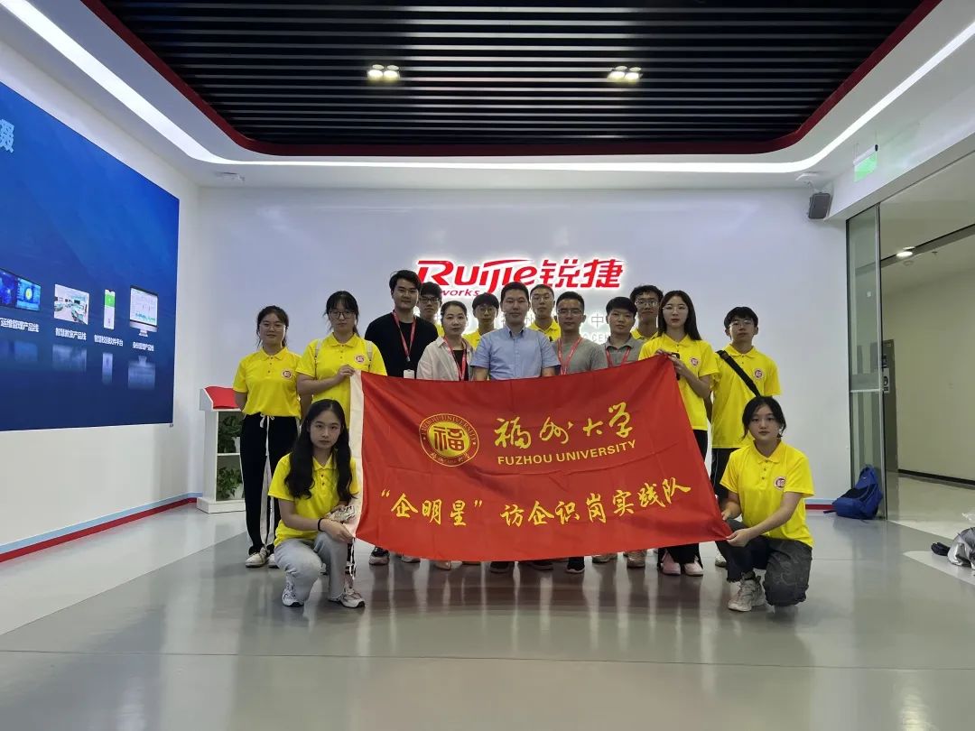 “企明星”访企识岗实践队来到位于福州高新技术产业开发区的锐捷网络股份有限公司进行参观调研。公司人力资源部校招经理黄霄等人热情接待了实践队一行。