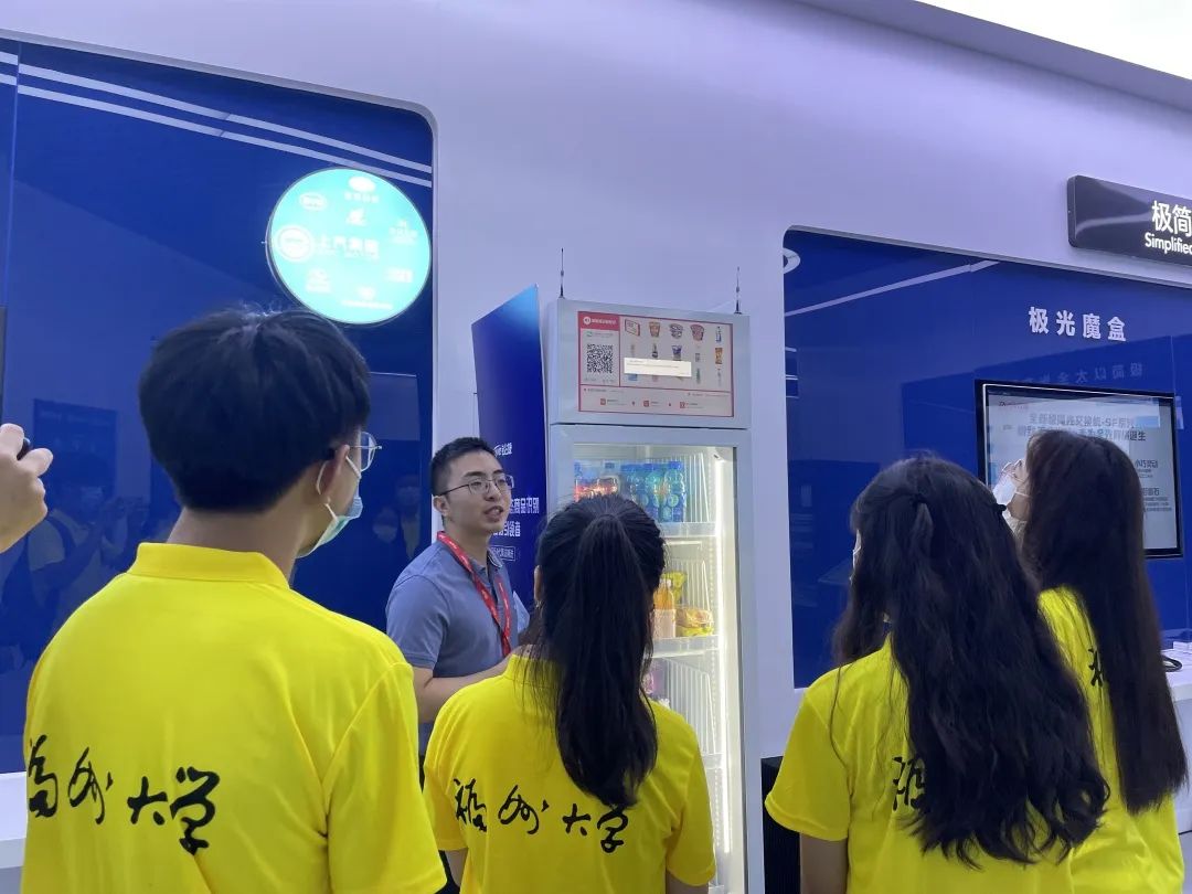 首先,实践队一行人在讲解员的带领下参观了锐捷网络科技展厅,讲解员向实践队介绍了公司的发展现状、主要产品和经营理念等相关概况。为了让实践团成员更加清楚地了解企业,讲解员分别从生产,研发,销售三大方面向实践队成员介绍相关产品。