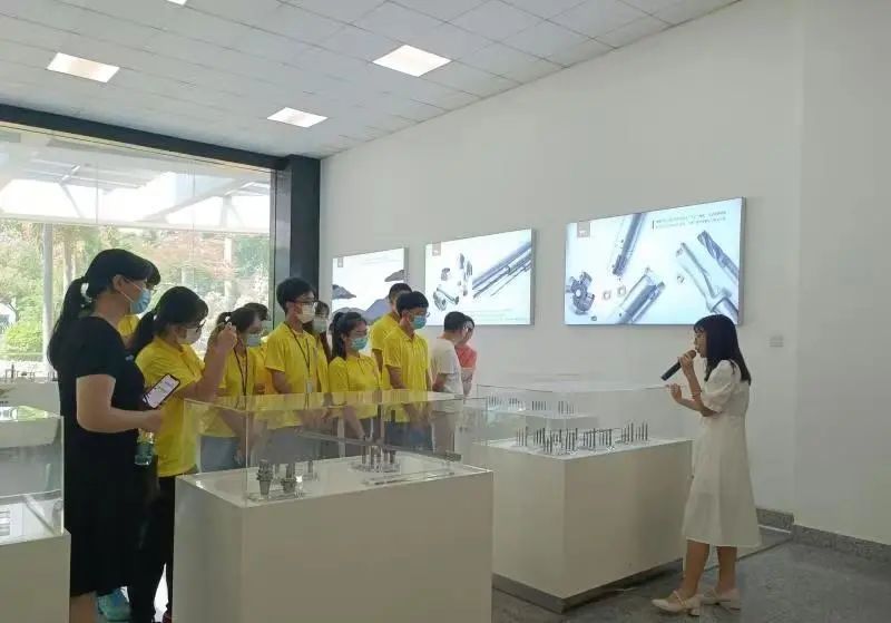 首先,机械学院各领导与实践队成员在工作人员的带领下参观了厦门金鹭科技展厅和生产车间。叶书记一行先后前往整硬刀具、可转位刀具、PCB微型刀具车间参观,近距离观看生产设备,深入了解生产工艺、制造流程和现场管理。