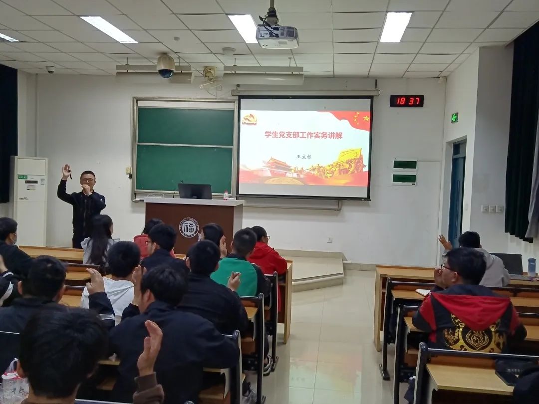 最后,王老师对学生党建工作提出了建议。他表示,学生党建工作要以党章党规制度条例为基本准则,以党支部党建任务为工作载体,以党支部党员智慧为宝贵资源,以高质量党建成果为最终目标,希望各党支部书记凝聚好、发挥好党员力量,扎实做好党建工作。