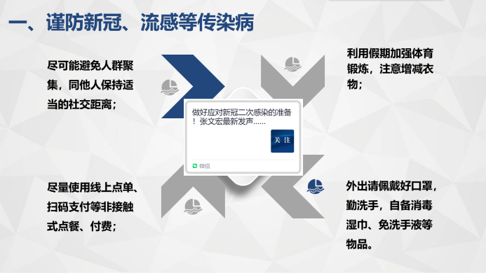 疫情防控岗副段长叶辉强调了五一假期的安全问题,在传染病防控、防溺水、防火、防骗以及交通安全五个方面进行了详细讲解并重点强调了需特别注意的事项。与此同时,也提醒同学们五一期间应加强自身的思想意识教育,遵守法律法规,严禁参与非法宗教、传销等非法活动。