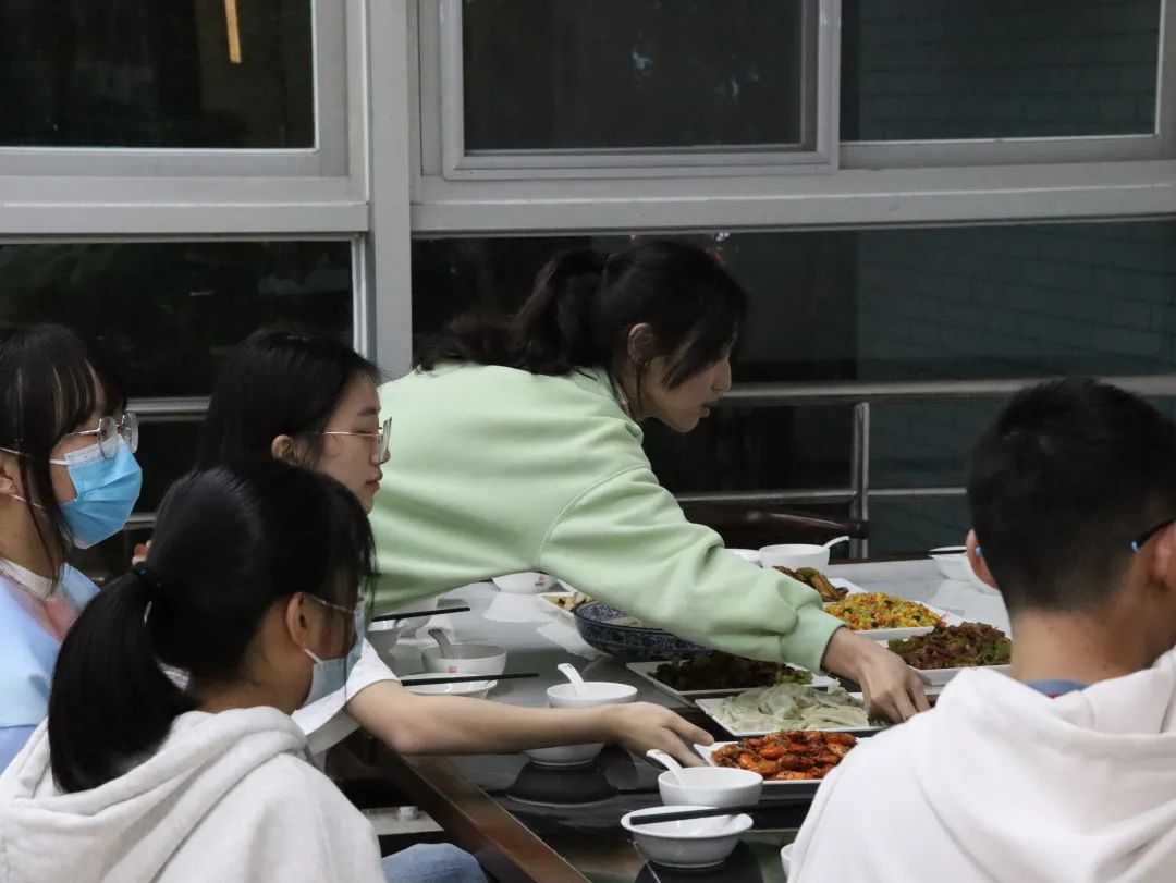 体验烹饪无疑充满快乐,享受劳动成果更是令人愉悦。在同学们烹饪完成后,大家几几围坐,享用着自己与身边同学共制的美食。