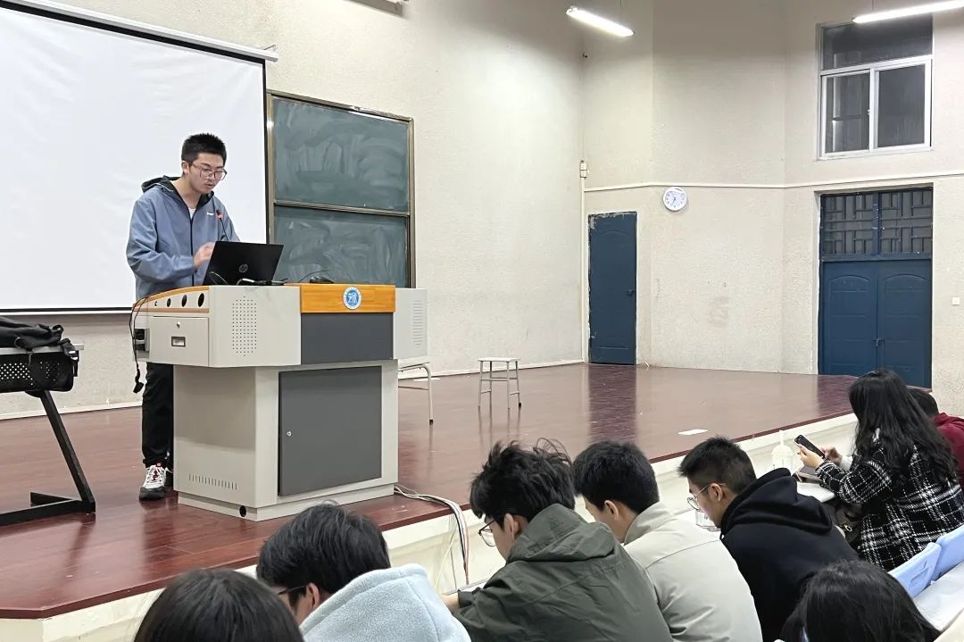 年段分团委副书记(学生)孙翊涵对高等数学、工程制图和英语三个重要学科进行了学习经验分享,同时对学生工作与学习的协调问题进行了介绍。他强调学生工作必然会占用部分时间,所以要合理安排好自己的时间,不要把事情放到最后一刻再去完成,要留出富余的时间应对随时会下发的任务。作为学生干部是对自己的一种锻炼,要珍惜机会。