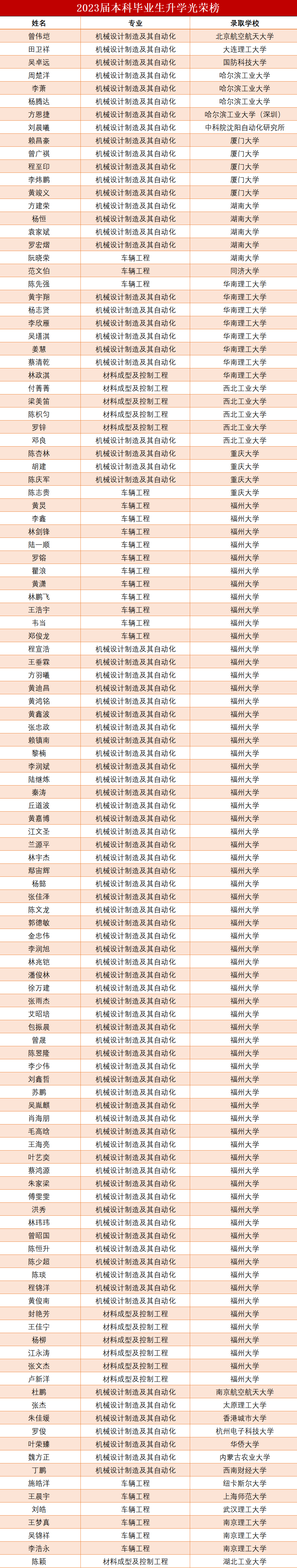 衷心祝愿机械学院金榜题名的学子们在新的跑道中继续取得优异成绩!