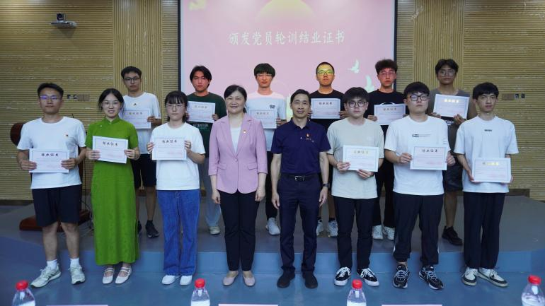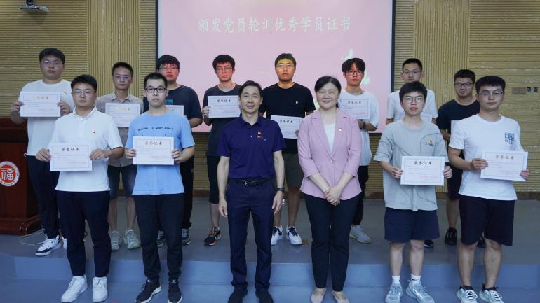 机械学院党委书记叶青、电气学院党委书记潘志辉,为党员轮训结业代表、党员轮训优秀学员颁发证书。