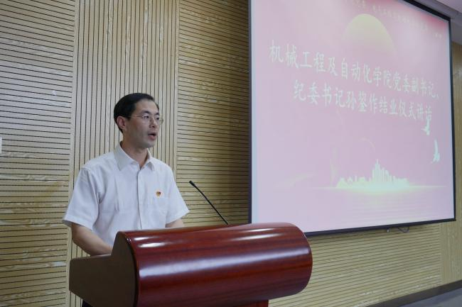 机械学院党委副书记兼纪委书记孙鋆作结业仪式讲话。孙鋆老师对全体学员顺利结业表示热烈的祝贺,代表学院党委对学员们提出四点建议:一是以学铸魂,筑牢信仰之基,补足精神之钙。二是以学增智,练就过硬本领,提升实践能力。三是以学正风,增强政治纪律,严守法纪底线。四是以学促干,创新工作思路,推动主题教育走深走实。