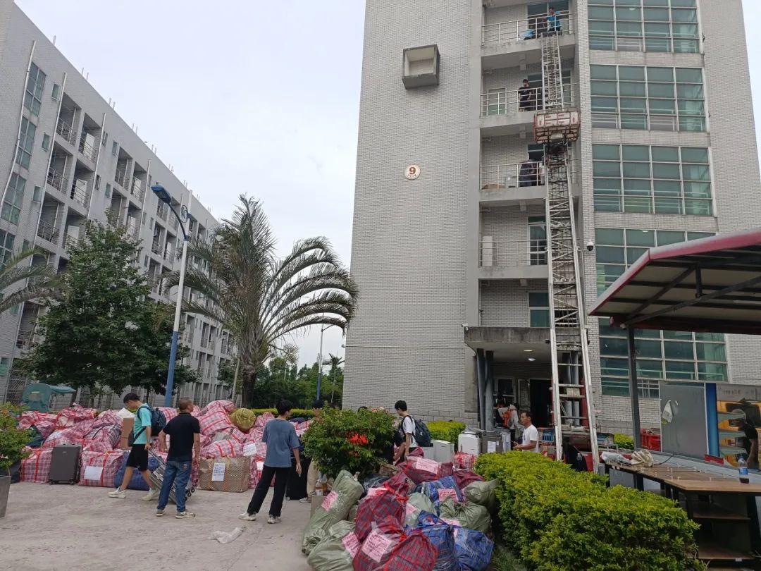 7月23日凌晨,随着第一辆货车驶入铜盘校区,正式打响了搬家的号角。中低楼层以人力搬运为主,高楼层以云梯为配合。随着行李一件件装车运往旗山校区,学生们自觉主动把印满大学生活重要记忆的铜盘校区宿舍进行最后一次打扫和清理。
