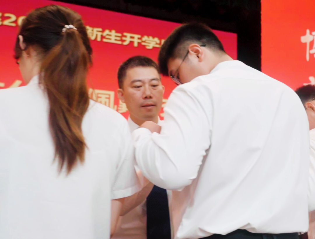 学院领导为新生代表佩戴校徽