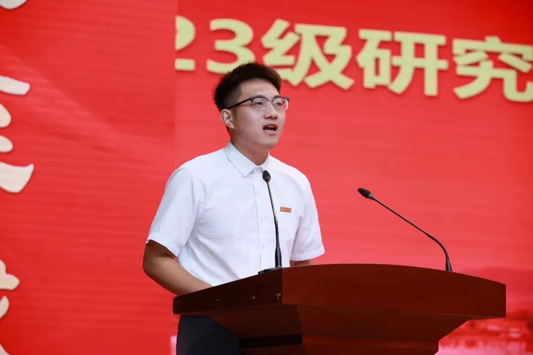 “来福大,做有福之人。”机械学院2023级博士研究生彭莱昕作为研究生新生代表发言,分享三点想法。