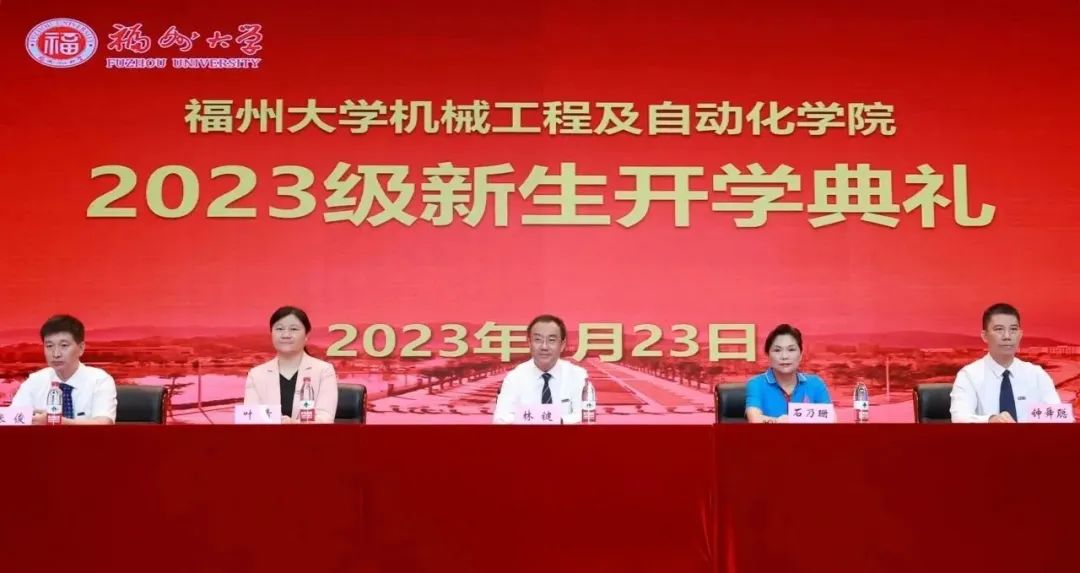 党委常委、副校长林键研究员,1979级优秀院友、福耀工程玻璃销售公司董事长石乃珊,学院党委书记叶青,学院院长、校人事处处长钟舜聪教授,学院副院长张俊教授,院长助理宋泽云高级实验师、任志英教授、王冰教授,材料成型系主任邓将华教授,车辆工程系主任林歆悠教授,学院党委办公室、学院团委、学院教学办公室有关负责同志,全体专职辅导员、引进生兼职辅导员,本科各年级班主任以及全体2023级新生参加本次开学典礼。典礼由学院党委副书记兼纪委书记孙鋆主持。