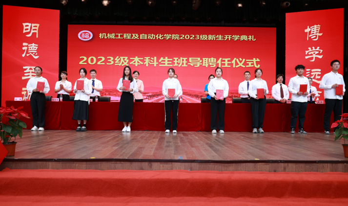 学院领导为2023级本科生班主任颁发聘书。他们学识渊博、满怀责任,在学生的求知路上悉心引导,传授知识,塑造品格,引领机械青年成为“又红又专”的高层次人才。