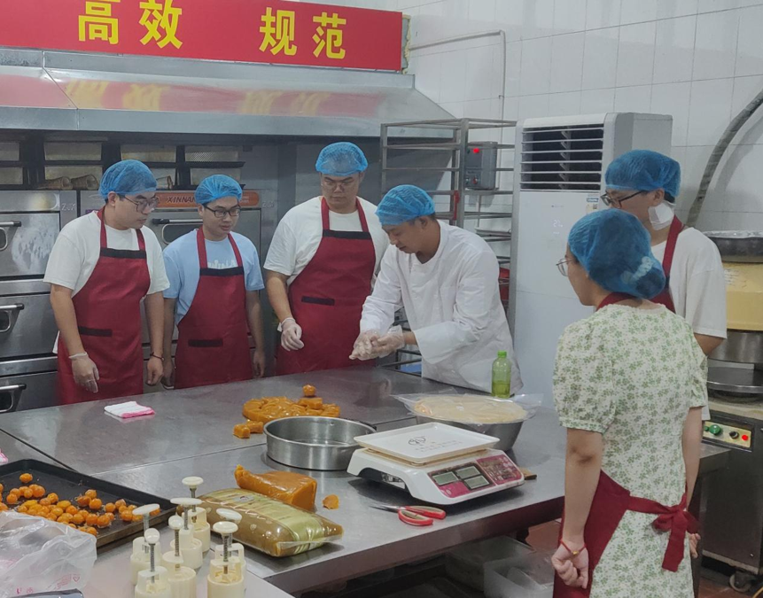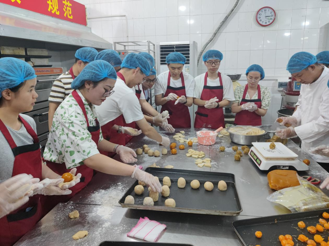 旗山校区紫荆园食堂参加由机械学院与校后勤管理处联合举办的“庆国庆·迎中秋·劳动美——广式月饼制作”主题活动。工作人员带领师生们进行了月饼烘焙的学习。