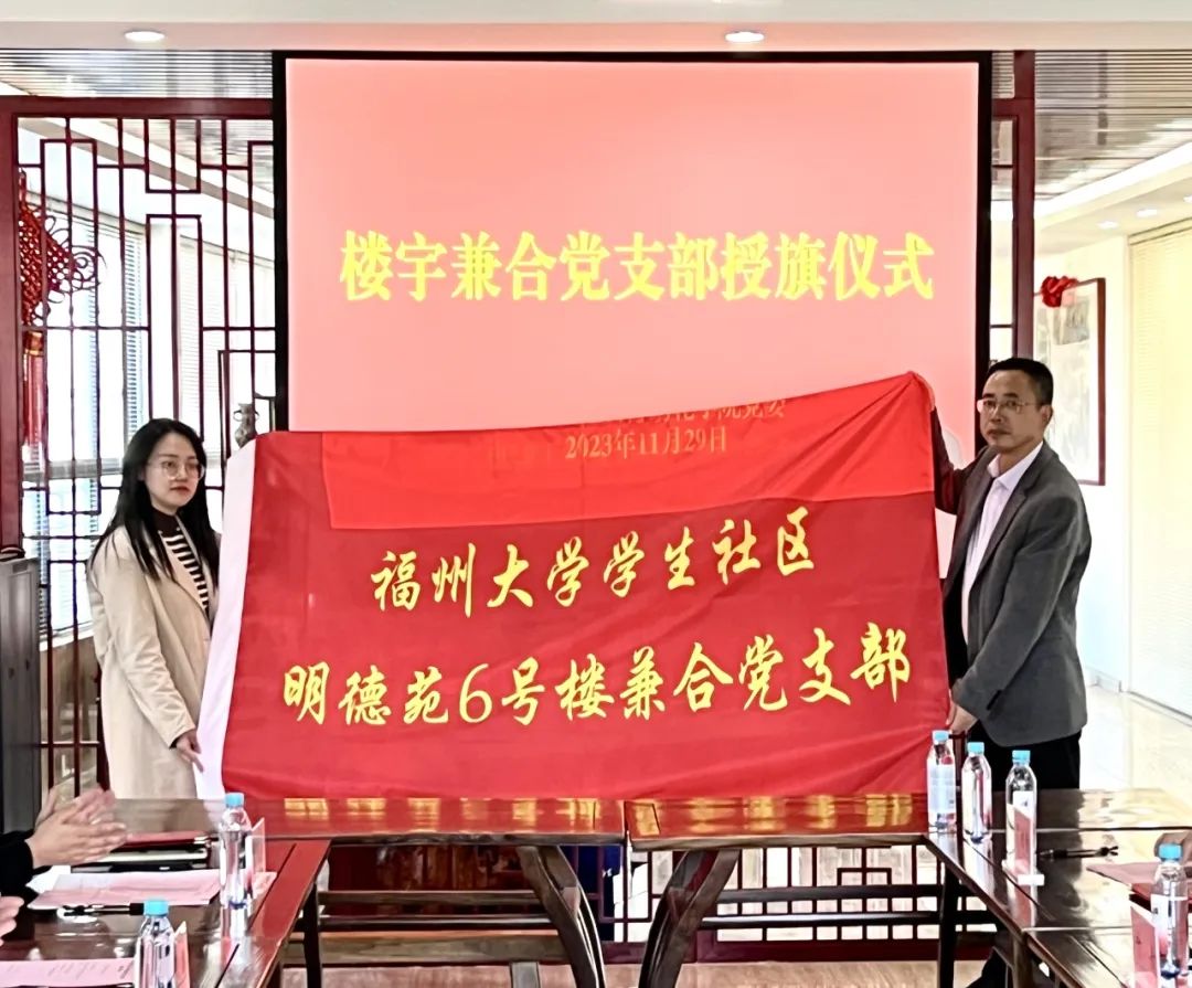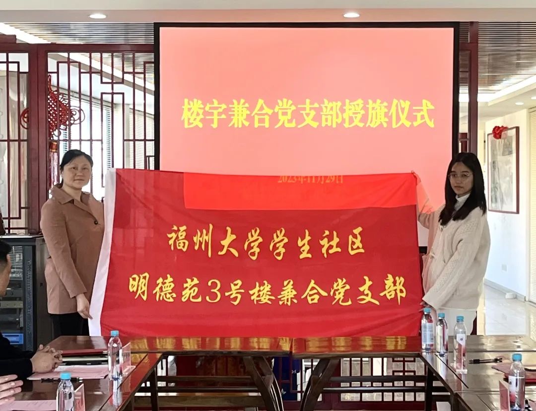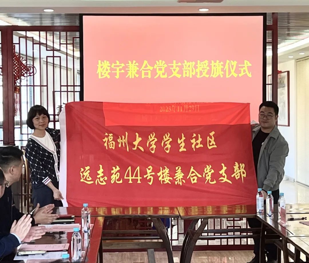 楼宇总指导员、楼层指导员为各楼宇兼合党支部授旗。