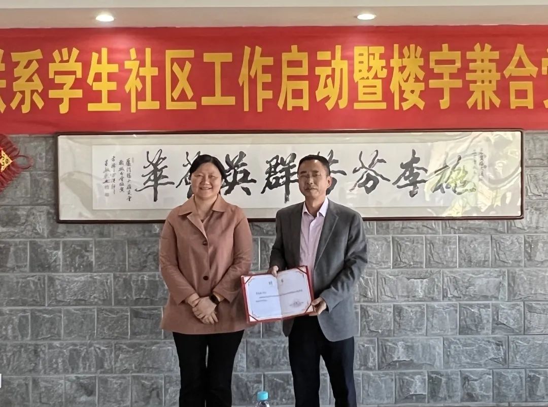 孙鋆副书记宣读了机械学院学生社区各楼栋的楼宇总指导员、楼层指导员和楼宇兼合党支部书记名单,叶青书记为楼宇总指导员、楼层指导员颁发聘书。