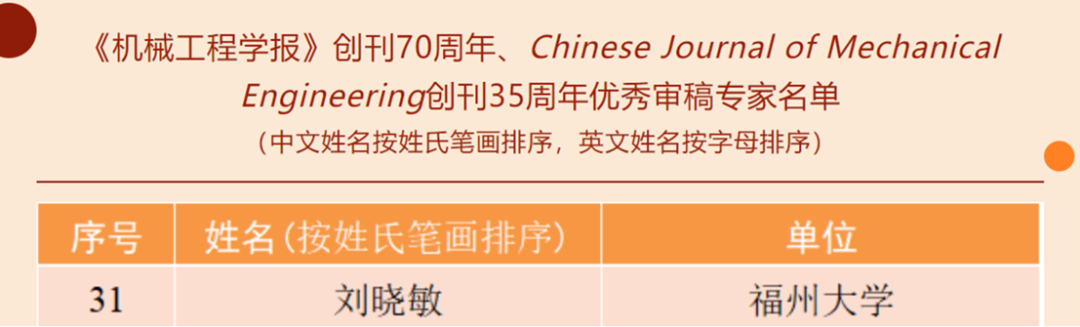 钟舜聪教授当选学报第十二届编委会委员,刘晓敏教授获评学报“近十年优秀审稿专家”,学院在机械工程领域的综合影响力得到进一步提升。