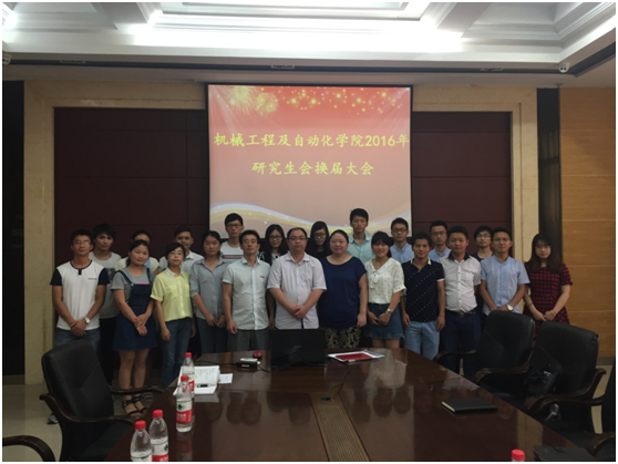 2016年研究生换届大会于机械南楼401圆满完成。出席本次换届大会的嘉宾有学院党委副书记林文麟老师、学院团委书记夏钢老师、学院团委副书记刘旭莹老师、研究生辅导员贾静老师、研究生一、二年级班长、2015届学院研究生会全体干部以及2016届学院研究生会全体干部。