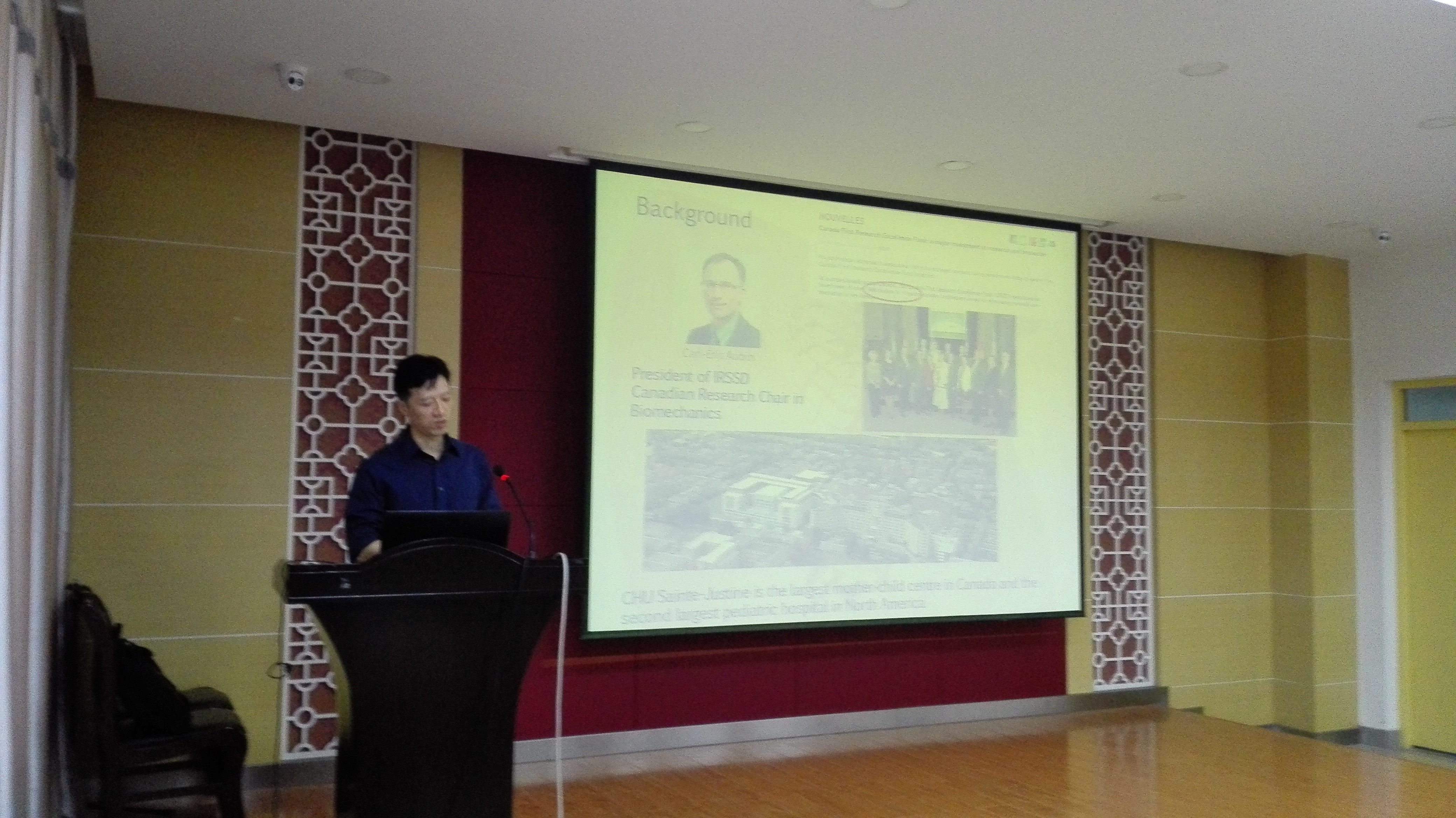 10月19日上午9点半,2016年4月日内瓦国际金奖获得者,现工作于香港中文大学威尔士亲王医院的林晖博士,在机械北楼415为15、16级研究生做了题为”Mechanobiology and Biomechanics in Orthopaedics Rehabilitation”的学术报告。av大平台