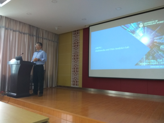 吴强博士来自悉尼科技大学,(英语:University of Technology, Sydney,简称UTS)位于澳大利亚新南威尔士州首府悉尼的市中心,是一所以商、法、教育、科技为主的综合性大学,澳大利亚名校之一。本次吴强教授的报告内容是关于未来智能城市的视频监控,随着科技的进步,智能城市的安全是其重要组件之一,而视频监控则是城市安全的重要保证之一。群体监控的主要内容包括:人群监控,交通监控,人群行为监控等方面。交通监控运用于交通管理,突发事件处理;而人群监控主要运用于人群行为预测,对群体动向的分析。而对单人的监控则是着重于对单人行迹的追踪,包括对个人步态和体态的识别。现阶段主要研究内容是对于监控目标的特征捕捉,包括目标的外形,颜色,运动轨迹等基本参数;其次是将监控系统和多媒体系统相结合,建立出立体的视频监控体系,通过对信息的共享和高效传递,更有效的完成智能城市的监控任务。