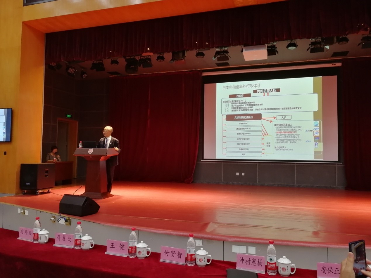 上席研究员KAZUKI OKIMURA(沖村憲樹)做了关于“日本科技振兴机构推进中日科技创新的举措”的讲座,首先介绍了日本科技创新的行政体系,包括内阁总理大臣、内阁府、文部科学省分管各大学的。并和中国的政府做了对比,利于学生们的理解,文学科学省相当于教育部。接下来,简要介绍了JST的使命及项目内容,JST的主要从事于推进知识创新并接将其成果回馈于社会与国民。JST业务概况主要制定科技创新的研究开发战略、受托业务等。支持日本全国范围的我技术转让,通过技术种子数据库、讲座和展会等,构建全国性的技术种子平台,为政府、大学、企业提供服务。JST为了进一步推进中日对的科技交流,设立了JST北京代表处,创建中国综合研究交流中心。中国综合研究交流中心(RRCC)的主要业务传递日中科学技术信息,介绍中国文献、举办有助于构筑日中交流网络的各种活动等。并且JST积极举办日中大学&论坛,为日中大学提供'相互交流、产学研合作、扩大留学'的平台。另外,日本·亚洲青少年交流项目推进推进室,改进日中关系,该项目实施单位目的是以草根交流活动为主,有意招收意愿的大学、研究机构等接待有派遣需求的大学、研究机构等,借此构建与加强双方合作关系,并持之以恒,同时也希望将亚洲高中生培养成为为人类做出贡献的一流科学家。访日期间的各种科技活动包括参加学术会议、参加科学技术活动、访问高中大学等。