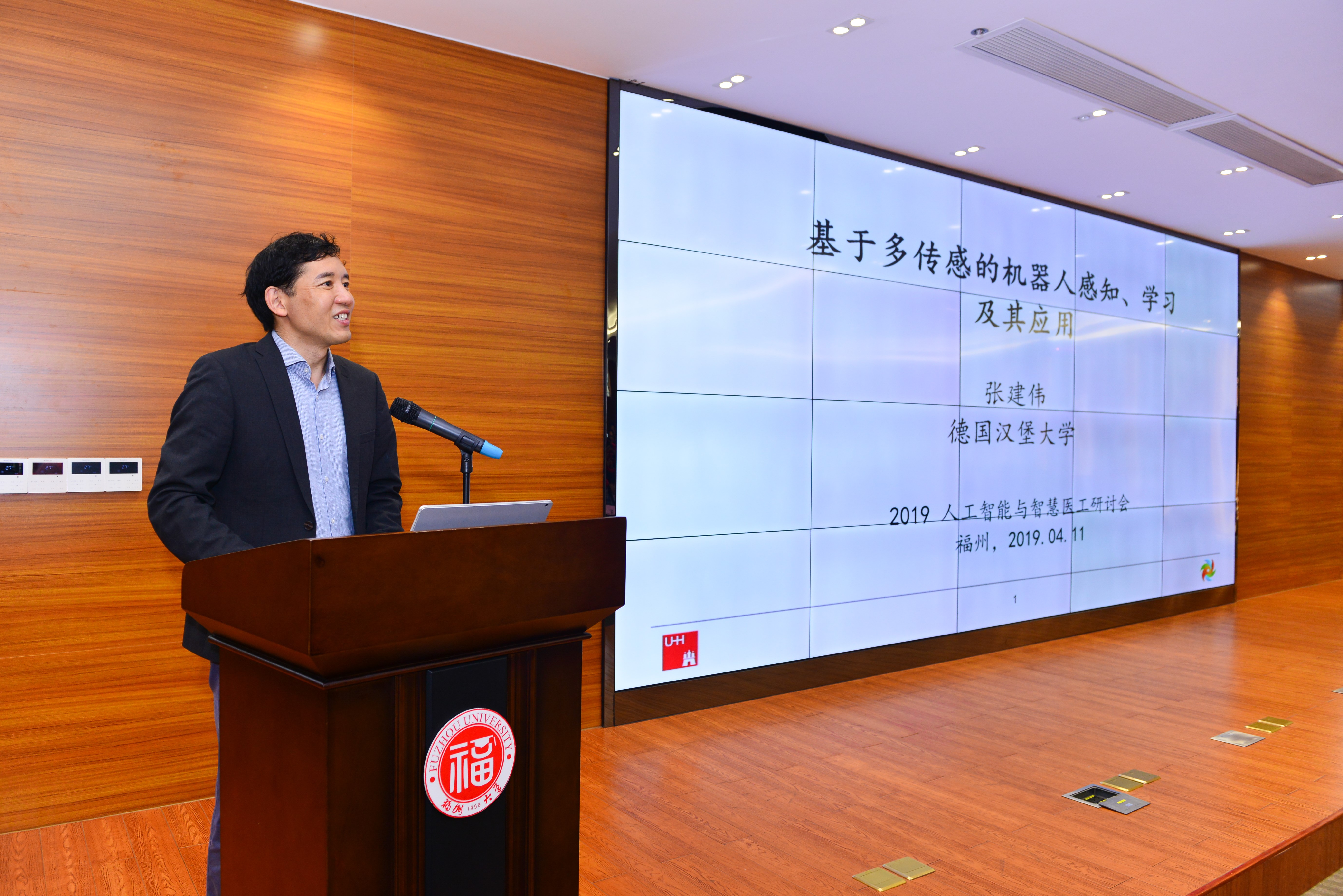 科技园阳光楼一楼会议厅顺利召开。本次研讨会邀请了多位来自人工智能与智能医疗相关领域的专家教授,其中包括:德国汉堡大学多模态技术研究所所长,德国汉堡科学院院士,千人计划专家张建伟教授;国家“万人计划”科技创新领军人才,电子科技大学机器人研究中心执行主任,人工智能研究院副院长程洪教授;中国中西医结合学会理事、中华中医药学会理事、福建省康复产业研究院院长、国务院政府特殊津贴专家刘建忠主任医师等权威人士。研讨会由av大平台