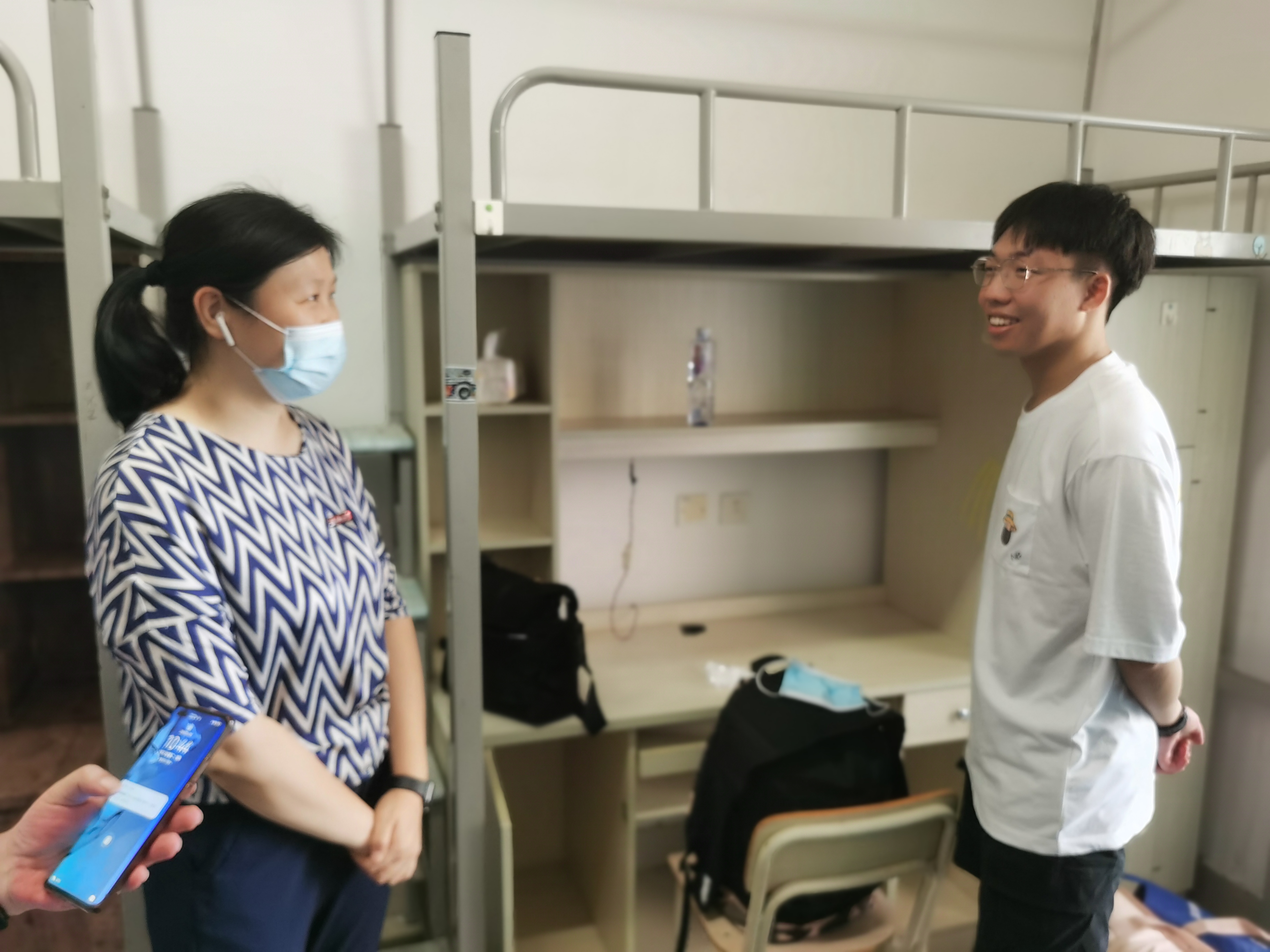 机械学院党委书记叶青、党委副书记林文麟、教学办主任宋长英、团委书记暨21级研究生新生辅导员林成金,以及滕培秀等机械学院辅导员在远志苑44号楼迎新点对新生报到工作进行指导,并走访了新生宿舍,聆听新生的声音,解答新生的疑惑,对新生和志愿者表达了热情的关心和问候。