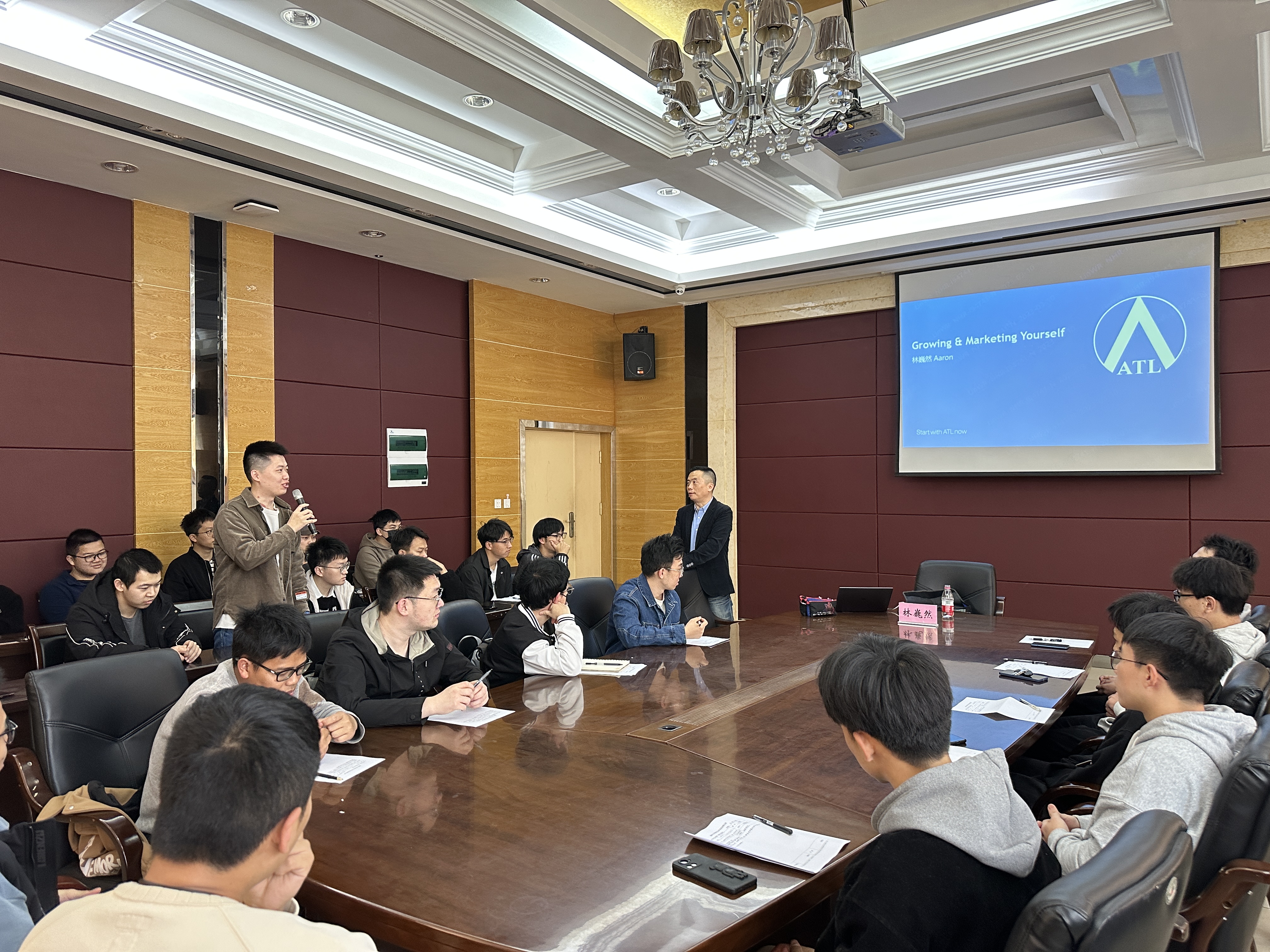课堂上,林巍然先生从职业生涯规划、自我成长等话题展开讨论,就如何提升自我与营销自我进行了详细的介绍。他提到,作为一名新时代肩负中华民族伟大复兴使命的新青年,应该在即将踏入社会就业的重要时期,学会将个人成长与企业成长结合起来,注重发挥个人优势,明确职业方向,提升个人竞争力。