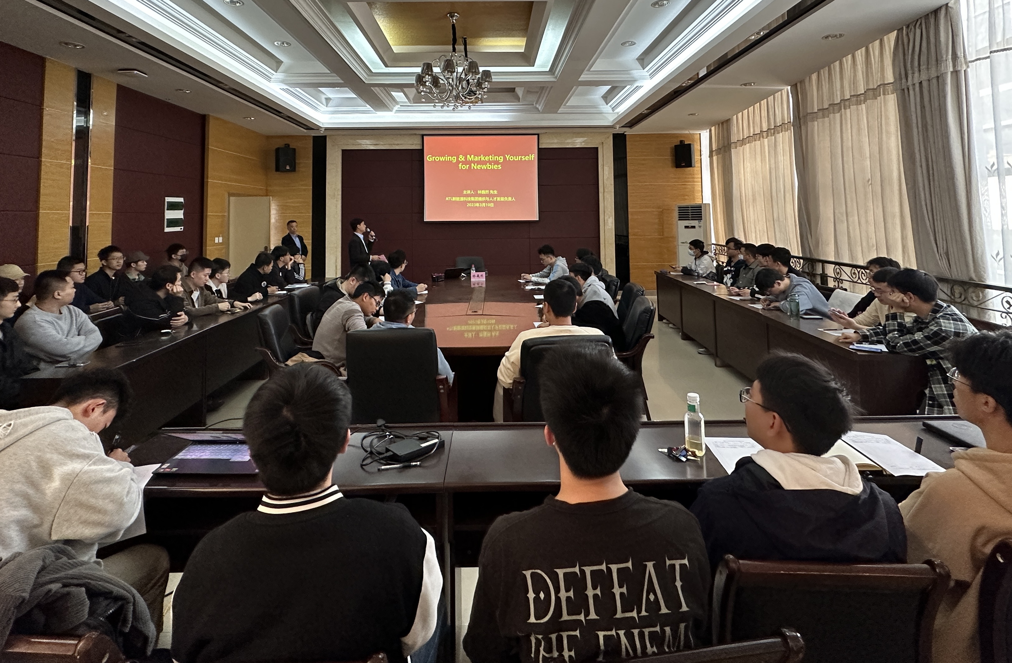 310日,机械学院“职在必得”就业指导系列讲座在南楼401会议室开讲。ATL新能源科技集团组织与人才发展负责人林巍然先生作了题为“Growing & Marketing Yourself - for Newbies”的专题讲座。讲座由学院团委林成金书记主持,院青马班学员,20232024届毕业生代表参加讲座。