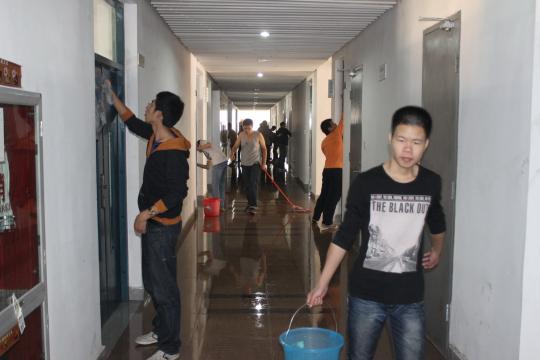 为迎接第十二届省级文明学校初评和深入开展“爱学习、爱劳动、爱祖国”的“三爱”教育,促进校园环境建设,培养学生的劳动意识,给广大同学营造良好的学习环境。10月27日,机械学院2011级学生在辅导员林成金老师和班级主要学生干部的组织下齐聚机械楼和车辆实验室,对100多个房间的门窗、过道走廊、卫生间和内外围花圃等开展卫生大扫除活动。8个班级共324名学生群策群力,共同为学院楼的美丽增添了一份光彩。