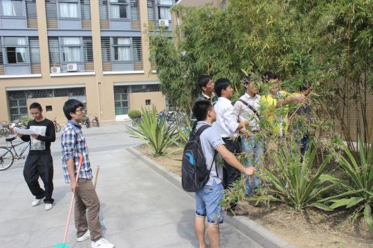上午9时,各个班级的同学都准时到达本班级的负责区域,按照协调会议上的任务分工和工具分配,在党员干部的带领下,同学们很快就投入到热火朝天的卫生大扫除中。清扫过程中,同学们发扬了不怕苦,不怕累的精神,对待卫生死角一丝不苟。无论是机械楼光洁的地面和亮丽的展柜,还是车辆实验室内整齐的工具和零件,都满撒着同学们辛勤的汗水。楼梯栏杆底座、墙角积尘、花草丛中的垃圾和玻璃上的尘迹都是重点整治对象,实现真正的卫生无死角。此外,同学们还对学院楼周边的花草、竹林进行了修剪。面对繁重的清理任务,分工明确,同学们忙而不乱,各项工作开展得井然有序。经过300多双手两个多小时的辛勤努力,整个机械楼及车辆实验室焕然一新。