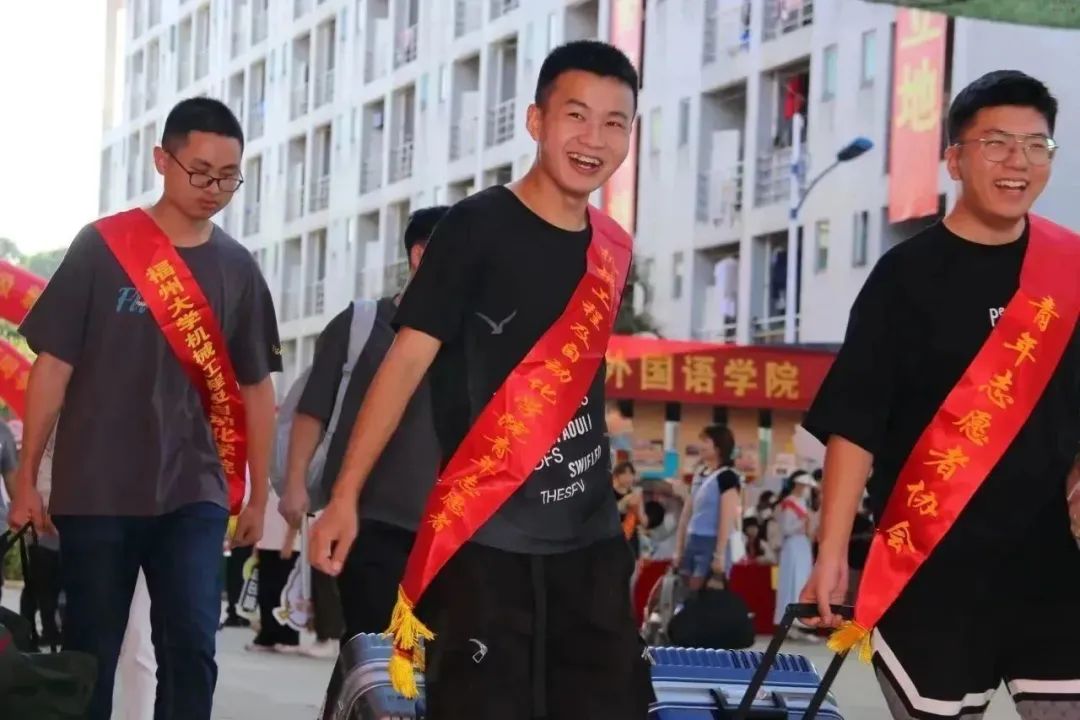 迎新志愿者们各司其职,微笑迎接,热情服务,协助搬运行李,引导新生报到,介绍校园地点,让新生快速熟悉环境。怀揣对大学的憧憬,新生们纷纷在签名墙上留下自己的名字,定格意气风发的青春风采,准备好在新的阶段绽放光彩。