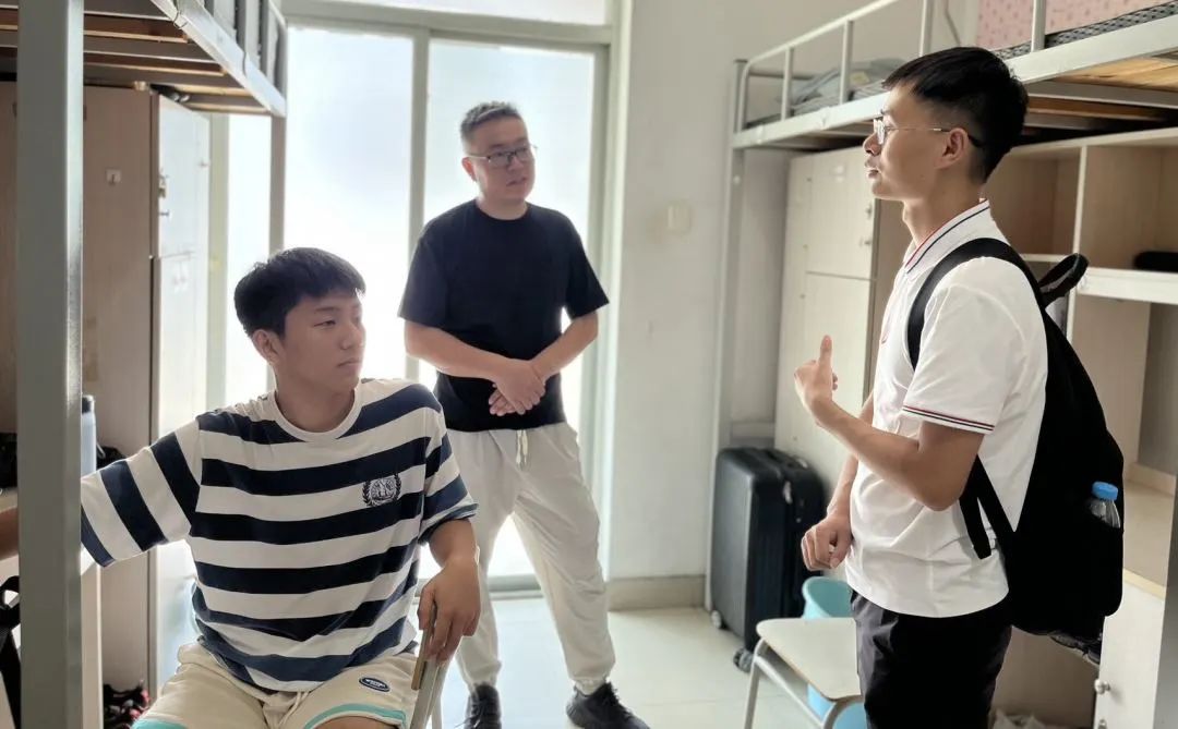 班主任还前往学生宿舍与新生及其家长进行深入交流,关心报到、安顿情况,帮助他们更好地融入校园。后续,班主任将全过程参与第一场班会、参与入学教育工作、军训等工作。