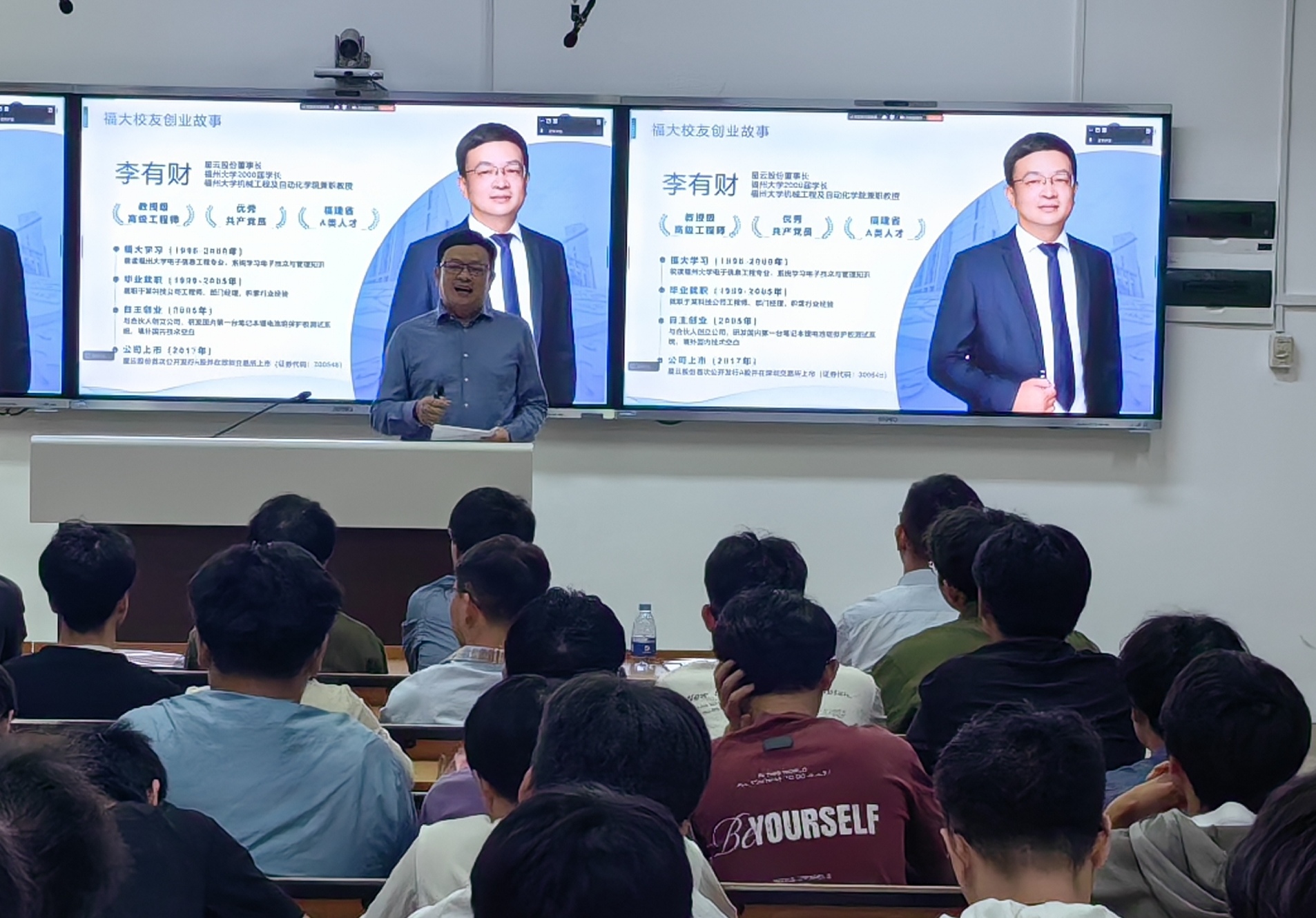 10月23日,96级校友、福建星云电子股份有限公司董事长李有财应邀返校,向学弟学妹分享自己的成长与创业故事!他深情回忆了在校期间专业学习、勤工助学、学生工作等经历,分享了从技术工程师到百亿市值上市公司掌舵人的蜕变历程。