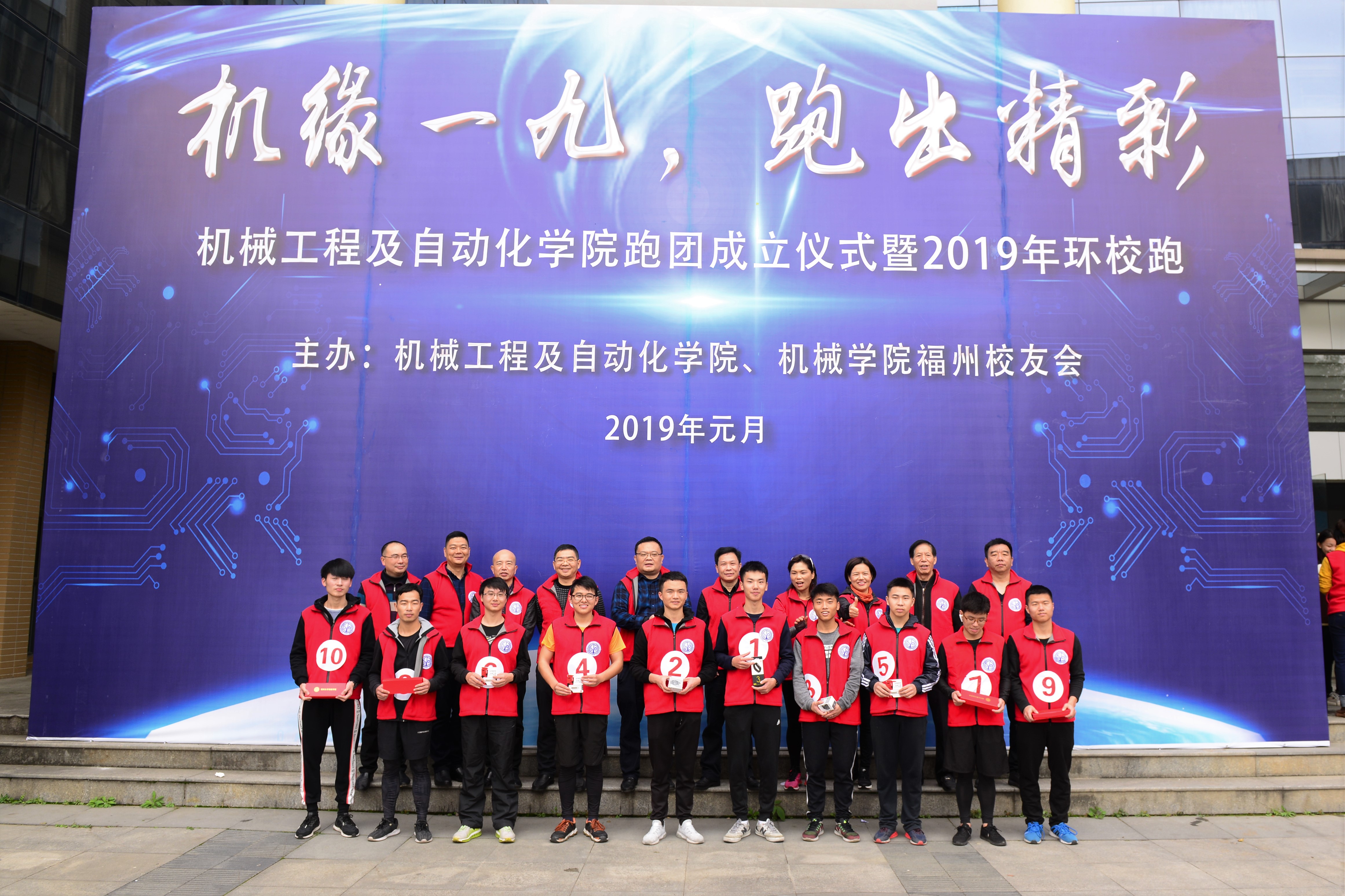 活动结束后,机械学院校友会理事会成员为跑团的前十甲颁发奖品,共同留下了珍贵的合影。
