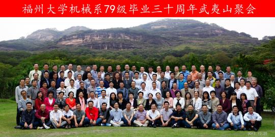 机械学院79级校友140多人从美国、英国、新加坡、新西兰、澳大利亚、日本、澳门和全国各地相聚武夷山,纪念毕业30周年。院党委副书记黄发友教授和林成金老师代表学院参加此次聚会。卅载相逢,万千感慨,大王峰脚下,留下了79级校友永久的友谊和美好的瞬间。