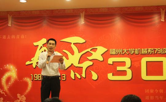 下午6时,本次聚会的重头戏“再聚·30年”庆祝晚宴和联谊晚会在武夷山庄隆重举行。晚宴以南平延平区翁明亮区长的致辞拉开序幕。在热烈的掌声中,黄发友教授代表母校对79级校友毕业30周年聚会表示祝贺,还简要介绍了学校、学院发展近况和学院在校友工作中所作的努力,他希望大家能“常回家看看”,为学院的建设与发展出谋划策、添砖加瓦。紧接着,各班以班级、宿舍为单位为大家带来精心准备的节目,独唱、合唱、吉他弹唱、朗诵……,游戏环节将晚会的气氛推向高潮。有位校友恰逢生日,大家同唱生日歌为其庆生。最后,晚会在周年聚会旗帜交接仪式中完满落下帷幕,龙岩成为35周年聚会地,龙岩校友代表接过会旗并表示开始做好聚会准备和欢迎大家五年后相聚龙岩。