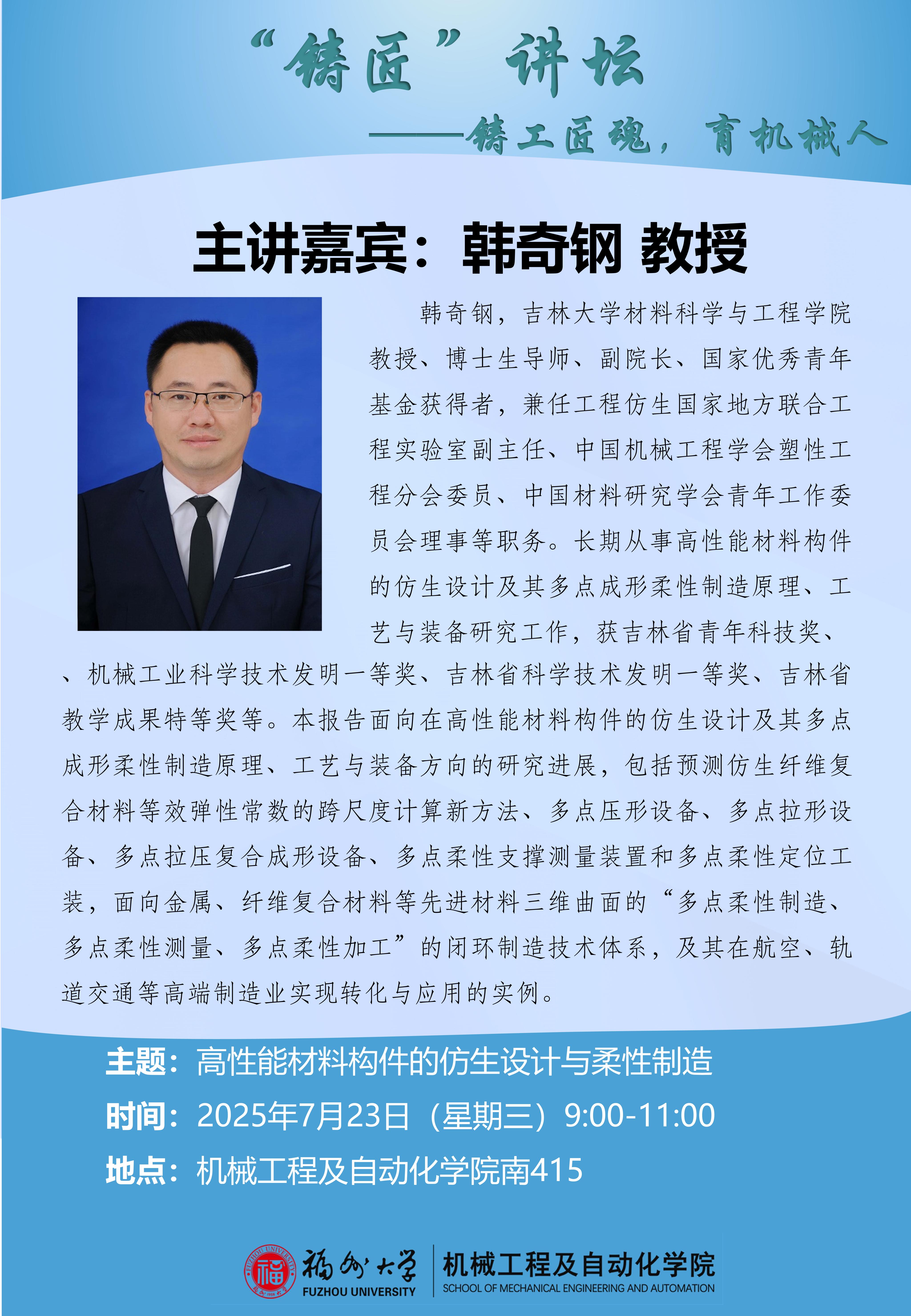 “铸匠”讲坛 --高性能材料构件的仿生设计与柔性制造