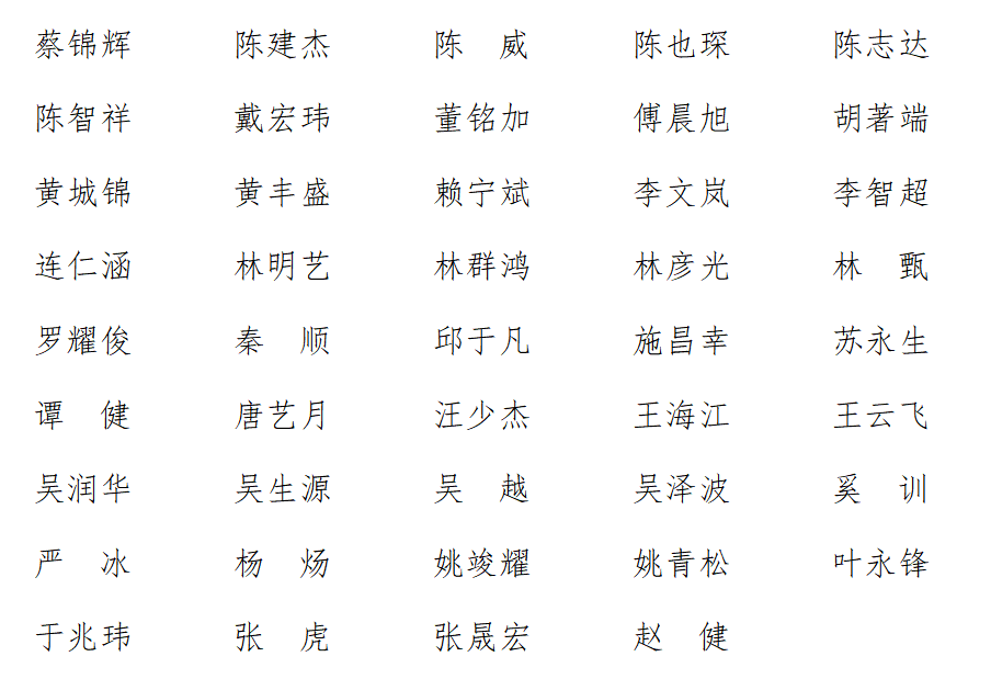机械设计制造及其自动化五班(43人)