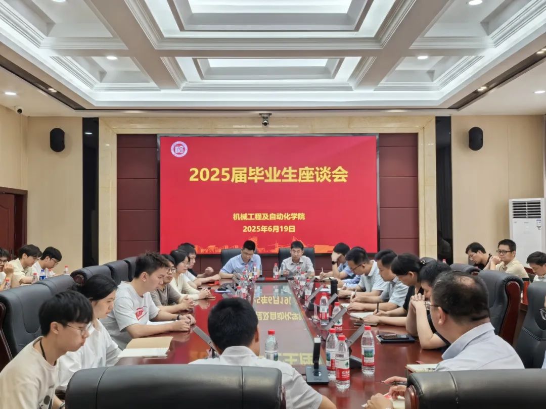 于机械楼南401召开2025届毕业生代表座谈会。学院党委书记陈伟民,负责学院全面行政工作副院长任志英,学院党委副书记兼纪委书记谢武,副院长张俊、杜恒出席会议。各院长助理、各系主任、各学位点负责人、全体辅导员及本硕博毕业生代表参会。