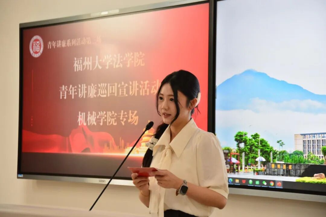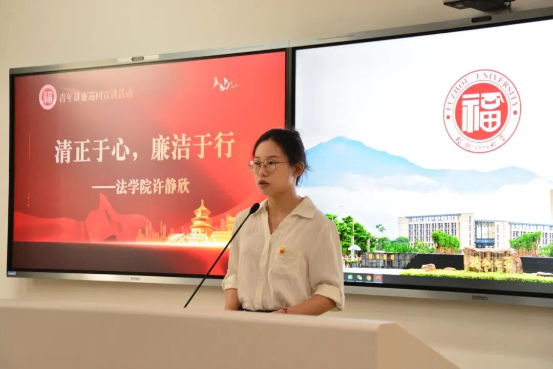 大学生法治宣讲团的高亚岑同学从三个维度展开论述:在“信念之基”层面,她以无人监考考场等校园实例,阐释廉洁应成为内心的价值认同;在“原则之界”部分,通过青年干部李晓飞的案例,揭示廉洁防线的崩塌规律;最后在“担当之责”中,号召青年学子通过新媒体平台传播清廉理念,让廉洁之风吹遍校园。